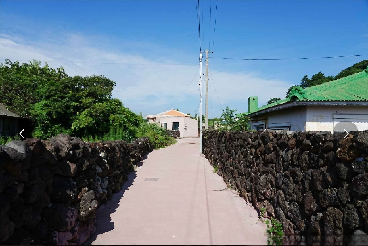 낮은 돌담 사이로 이어진 좁은 골목 .