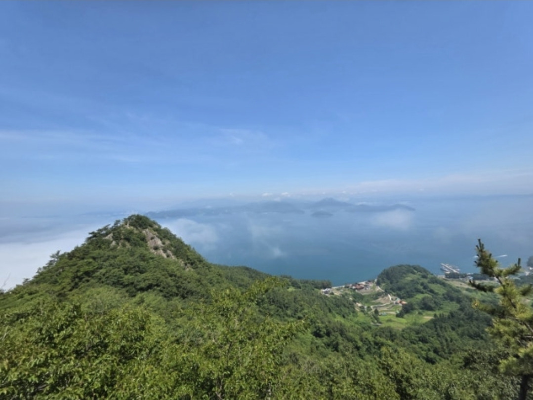 구름 아래의 섬들—욕지도, 연화도, 한산도— 모두 물 위가 아니라, 구름바다에 떠 있는 듯했다. 나는 지면 위에 서 있었지만, 마음은 완전히 공중에 떠 있었다.