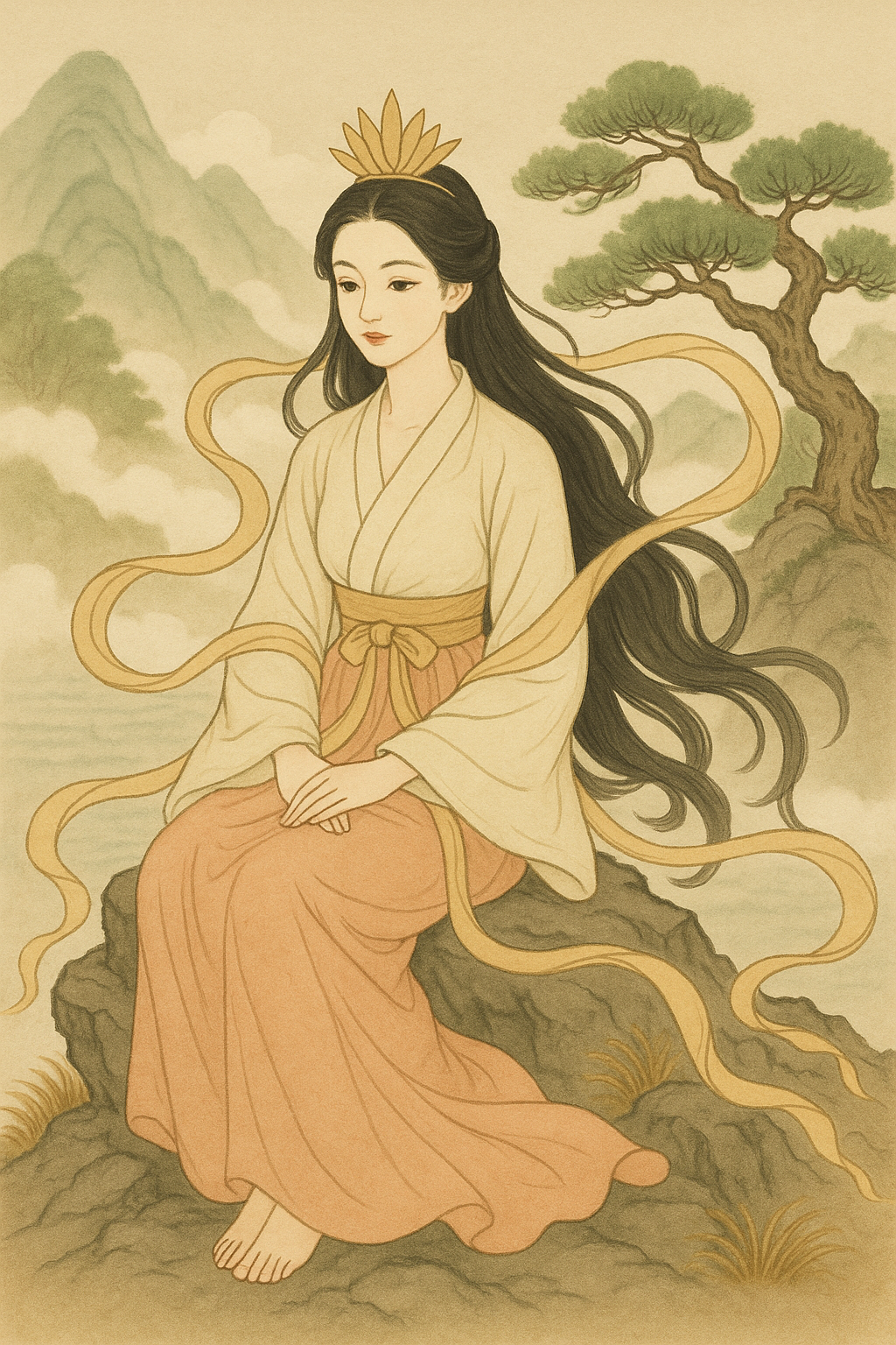 하늘나라에서 옥녀 한 명이 몰래 인간 세상으로 내려왔다.