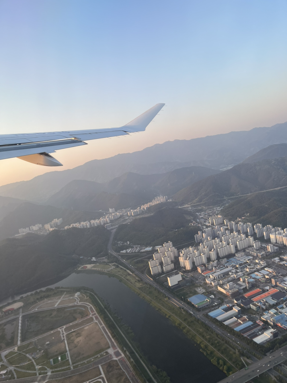 탑승하고 나니 조금 긴장이 됐다. 평소에도 놀이기구 같은 걸 두려워하긴 해도 오락거리에 지나지 않을 수 있겠지만 비행기는 확실히 진짜(?) 공중을 날다 보니 간이 쪼그라들었다. 마침 창문 쪽에 앉기도 했고, 혼자 여유로운 척 바깥을 구경하며 날개를 유심히 관찰했다.