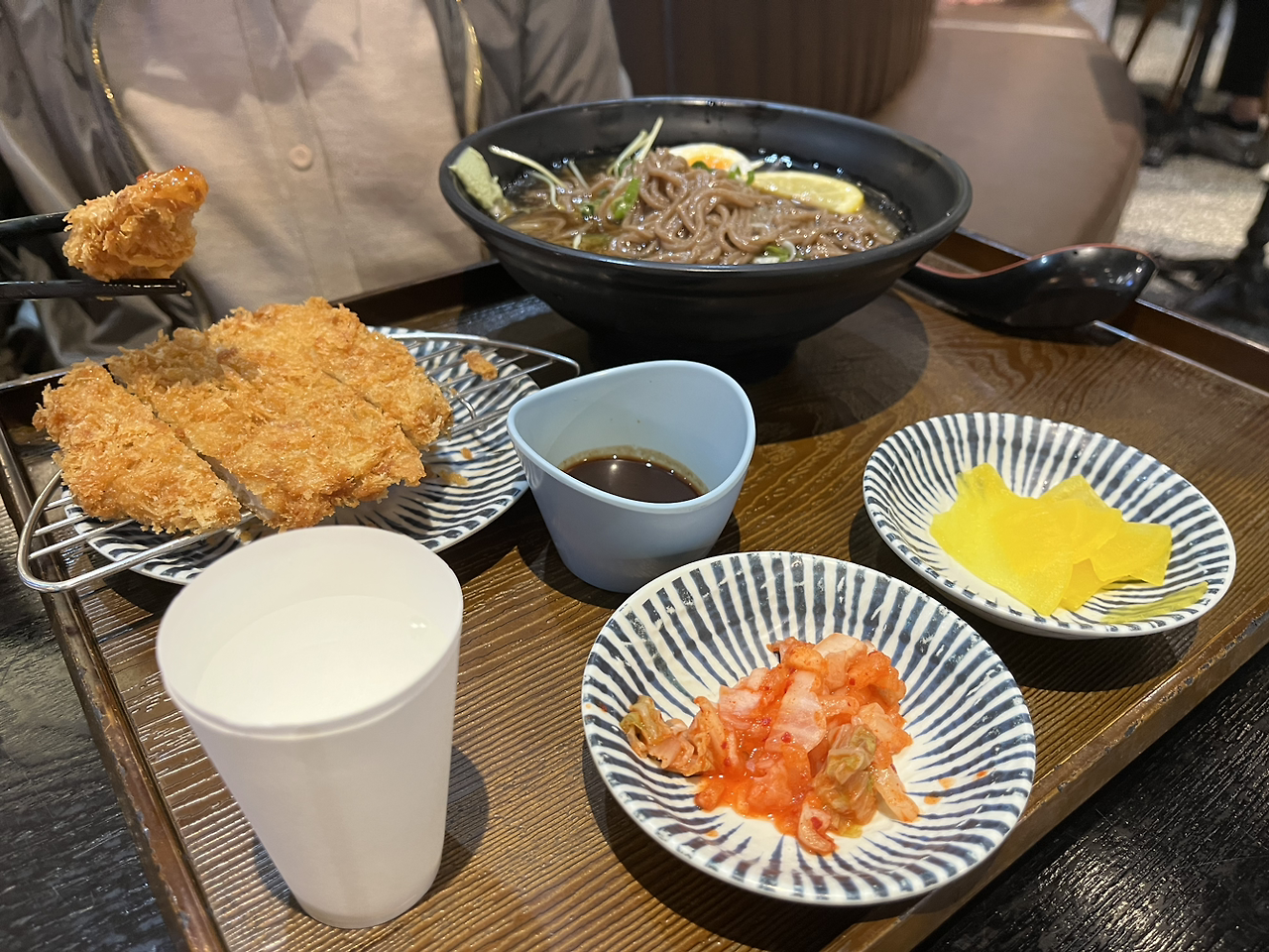 내 메뉴는 찍지 않았다. 이 두 메뉴로도 설명이 될 것 같아서이다. 누나는 베트남식인 콤 가(닭가슴살 파인애플 볶음밥?)를 엄마는 일본식인 '돈가스 소바'를 시켰다. '짜조'는 군만두 같은 느낌이 나는 게 생각보다 맛있었다. 나는 '까츠동'을 시켜 먹었는데, 베트남음식에 미련이 생겼던 순간이었다.