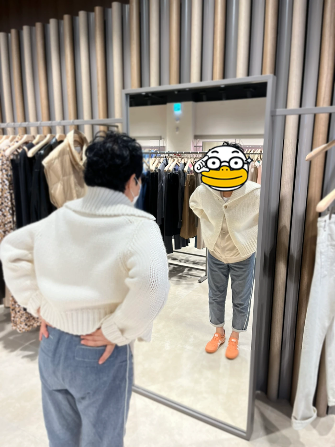 Della Lana라는 브랜드에서 마음에 드는 옷을 찾았다. 여기는 신세계에서 굉장히 밀어주는 캐시미어 브랜드이다. Della Lana 자체가 캐시미어(=양모)라는 뜻이라고 직원분이 알려주셨다. 결국 구매한 옷이기 때문에 올려본다. 직원분들이 잘해주셔서 마음이 끌렸던 것도 있지만, 무엇보다 엄마와 누나 둘 다 매장에 드러서자마자 눈에 불을 켜고 달려들었던 옷이다. 무척 엄마에게 잘 어울렸다.