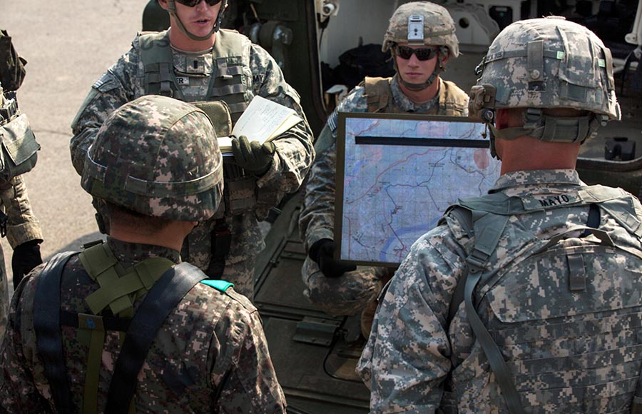 이뿐 아니다. 어느 날 평택기지 내 군 식당 (D/FAC: Dining Facility)에서, 방탄복에 완전무장으로, 기관총을 옆에 놓고 사수, 부사수가 함께 식사하고 있었다. 아침 회의차 식당에 들른 필자가 “무슨 훈련하니?” 물었더니, “그냥, 부대의 일상적인 훈련…”이란다. 그럼에도, 식당에 공용화기까지 들고 들어와서 조별로 함께 먹는 모습을 보니 ‘항재전장(恒在戰場)’을 실감한다. 하긴 밥 먹는 식당이라고 군인 정신이 다를 이유는 없다.