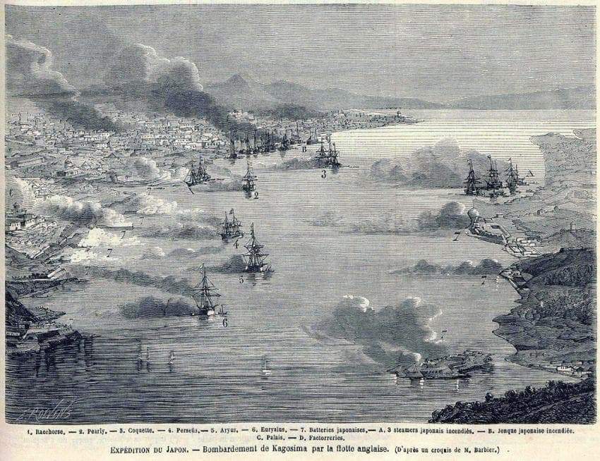 당시, 영국군의 함포는 사거리가 4Km를 넘어 1km에 불과한 사쓰마 대포에 비해 유리한 상황이었다. 영국함대는 3일간의 공격으로 사쓰마 번 증기선 3척을 침몰시키고, 10개 해안포대를 초토화하고, 가고시마의 ‘죠카마치’ (성 아래 마을) 대부분을 화재로 소실시켜 사쓰마 번은 큰 피해를 입었다. 하지만, 영국도 군함 7척 중 3척의 증기선이 소실되는 등 사쓰마 번의 화력에 의해 막대한 피해를 입어, 결과는 사쓰마의 분전에 의한 영국함대의 대패로 보였다.