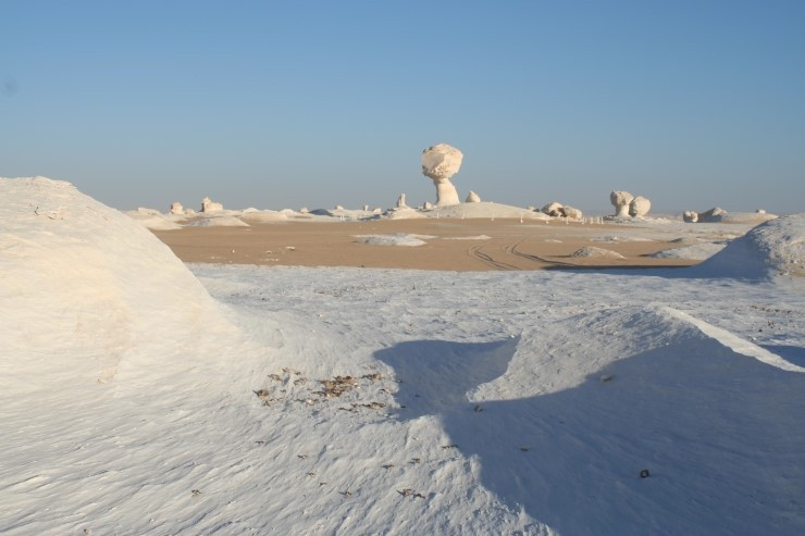 알렉산드리아에서 리비아 국경인 서쪽으로 계속 가면 ‘마르사 마투르’를 지나 청정지역 ‘사하라’ 사막에 도달한다. 특히, '사하라' 사막의 끝자락에 위치한 ‘백사막’과 ‘흑사막’은 많은 서구 관광객들이 즐겨 찾는 곳이다. 이중, ‘백사막’은 수 만년 전, 바닷속 산호초가 굳어 화석화된 뒤 지각변동으로 융기되고 다시 풍화작용을 겪어면서 만들어진 2-5미터 높이의 흰색 바위기둥이 수 천 개나 솟아있어, 이들 수천 개의 돌기둥 암석을 보는 것이 압권이다. 그리고, 이 돌의 조각으로 온통 흰색 천지라 하여 '백사막'이라 부른다.