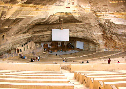 가난한 집들과 쓰레기더미와 악취 가득한 마을을 지나 꼬불꼬불한 길로 모카탐 언덕 꼭대기에 오르면 거대한 돌산을 깎아놓은 동굴 교회가 보인다. 알렉산드리아 콥틱교회와 함께 중동 최대의 교회로 유명한 '성 시몬' 동굴 교회다. 쓰레기마을 주민들이 거대한 사암 절벽을 깎아 동굴에 400여 명이 기도할 곳을 만들었는데, 그 모습이 입소문을 타는 바람에 관광수익을 기대하는 이집트 정부가 2만여 명 수용가능한 규모로 교회 확장을 허용했다. (이슬람이 국교인 나라에서 교회의 확장은 거의 불가능하다)