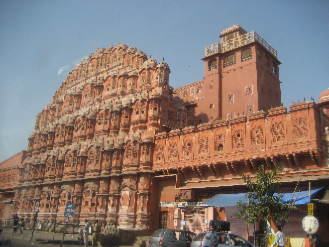 이런 건물들 중에서도 가장 유명한 관광지는 바람을 잘 통하게 하려는 특이한 양식의 ‘바람의 궁전’이다. '하와 마할'이라는 이 건물은, 세상밖 출입이 제한된 왕실의 여인들이 궁궐 안에서 창을 통하여 거리와 축제 등을 볼 수 있도록 하였는데, 이 때문에 바람이 잘 통하는 격자형 창문으로 만들어진 데서 유래된 이름이다.