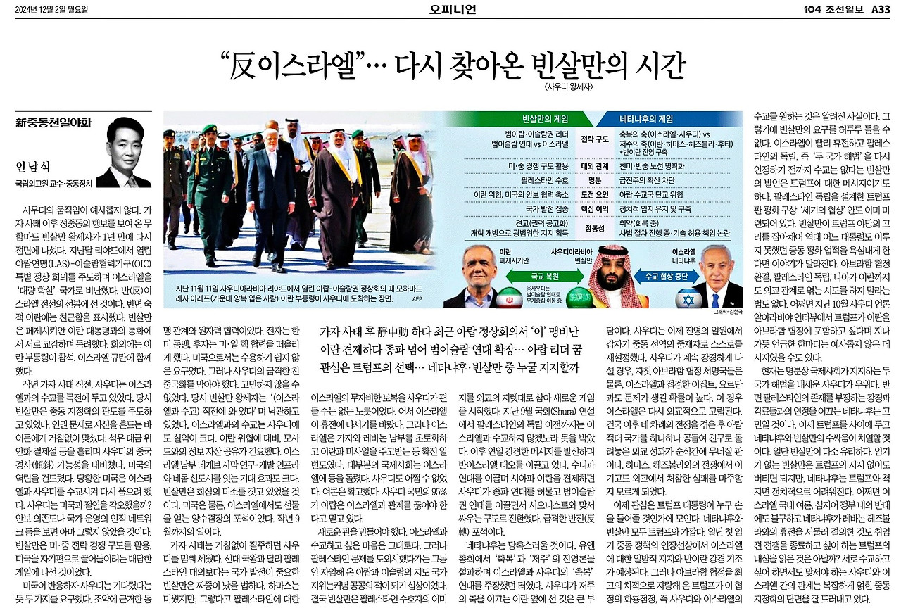1. 사우디아라비아 빈살만 왕세자가 반이스라엘 여론을 의식해 이란과 국교 복원에 나선다.
