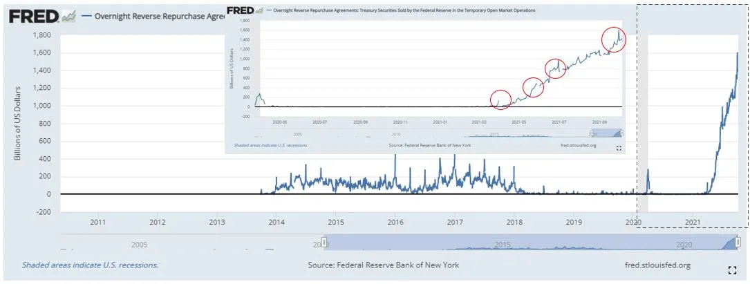 최근 역사상 Reverse Repo는 사상 최고치를 경신하고 있으며 9월의 상승폭은 놀랄 만했다.