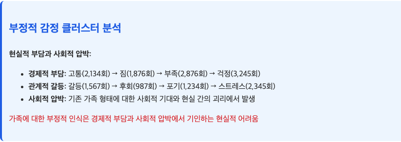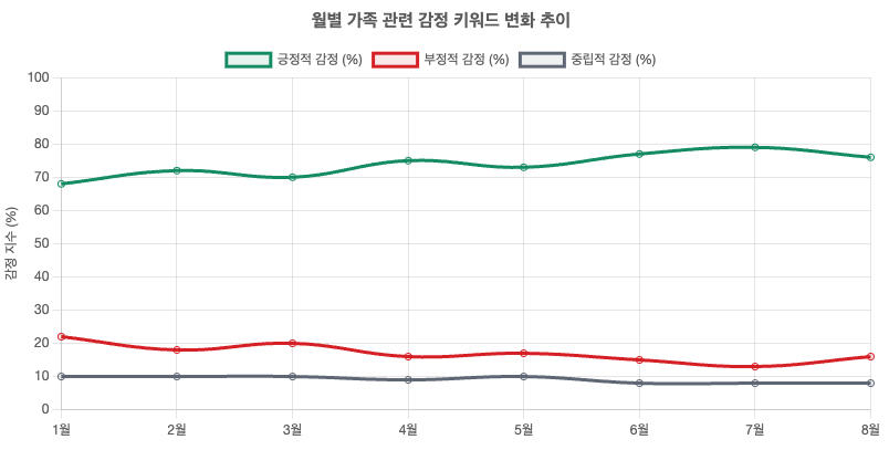 감정적 양극화에서 균형 잡힌 시각으로의 전환: '사랑'(8,923회) vs '고통'(2,134회), '행복'(7,456회) vs '짐'(1,876회)의 대립구조가 '지원'(87,432회)과 '투자'(45,321회)를 중심으로 한 실용적 해결책 모색으로 발전했습니다.