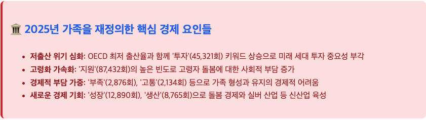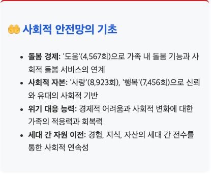 '가족' 키워드는 전통적 가족 개념을 넘어 '다양성 포용적 가족관(Inclusive Family Paradigm)'과 '경제적 회복탄력성(Economic Resilience)'의