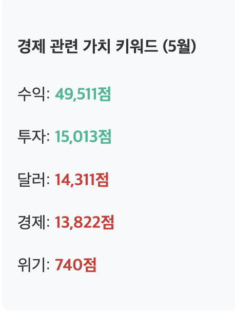 2025년 '가치' 담론의 근저에는 경제적 불확실성과 미래에 대한 불안이 자리하고 있습니다. 뉴스와 블로그에서 위기, 부정, 부족과 같은 부정적 감성 키워드가 꾸준히 상위권에 등장하는 것은 현대 사회의 경제적 불안정성을 반영합니다.