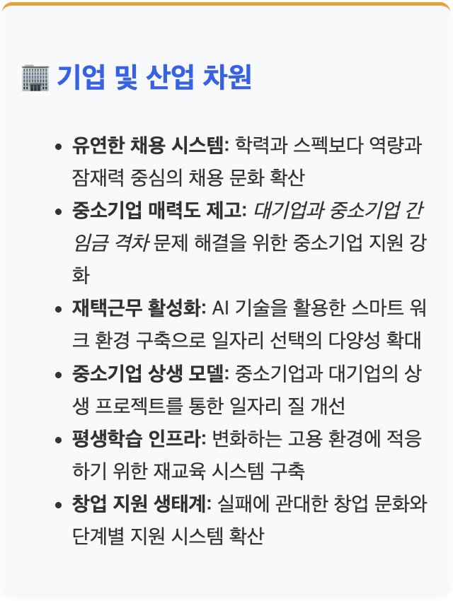 2025년 상반기에 확인된 이러한 변화는 한국 사회가 고용 문제를 다루는 방식의 근본적 성숙을 의미합니다. 더 이상 고용을 개인의 생존 문제로만 바라보지 않고, 사회 전체의 발전과 개인의 성장이 조화를 이루는 통합적 관점에서 접근하는 사회로 발전하고 있습니다.