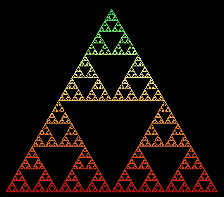 이 삼각형 무늬는 처음의 큰 삼각형에서 작은 삼각형을 반복적으로 파내면서 만들어진다.