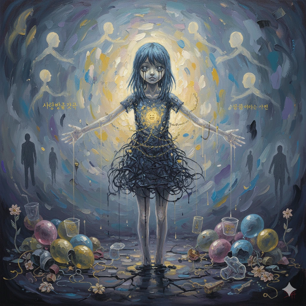 아오이는 문득 거울 속의 자신을 보았다. 거기에는 숨만 쉬어도 사랑받던 어린 시절의 기억을 잃어버린 채, 사랑받기 위해 자신을 깎아내며 서 있는 한 소녀가 있었다. 내면은 춥고 외로웠지만, 내일 아침이면 아오이는 다시 세상에서 가장 밝은 가면을 쓰고 히카루 앞에 설 것이다. 그것이 그녀가 아는 유일한 생존 방식이었으므로.