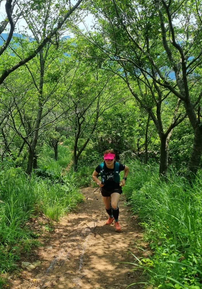 달리기를 하면서 같이 뛴 동행자들은 산딸기를 발견하면 따주었고, 오디도 따먹었다. 나를 잠깐이라도 쉴 수 있게 해주는 산딸기가 너무 고마웠고, 누구라도 운동화 끈이 풀렸다고 먼저 가라고 하면 꼭 같이 가야 한다며 기다려 주기도 했다. 산 정상을 올라갈 때마다 정상에 올랐다는 감흥보다는 '사진 찍는다고 좀 쉬겠다'라는 생각이 더 먼저였다. J가 나에게 100Km 울트라 마라톤을 위한 예방접종이라고 생각하라고 했다. 근데 아무리 생각해도 50Km 울트라를 뛰는 것보다 트레일러닝이 더 힘들었다. 로드를 장거리로 뛴다는 것은 아무리 많이 남아 있다고 하더라도 계속해서 달리기 때문에 거리가 빨리 줄어들었다. 하지만 트레일러닝은 오르막은 느리고, 내리막도 느렸다. 달릴 수 있는 평지는 많이 없었다. 로드 달리기보다 더 전신을 사용하고, 다리 근육에 자극도 많이 되었다. 물론 쉬는 시간도 많았지만 트레일러닝을 하는 동안 100Km를 뛰게 되면 이것보다 더 힘들면 어떡하지? 그런 공포도 느꼈다. 달리면서 M님이 말했다. "야구선수 이대호가 이런 말을 했어요. 성공하지 못하는 것이 실패가 아니라 도전하지 않는 것이 실패라고, 도전을 해서 성공하지 못하면 그것은 실패가 아니라 경험이라고요." 그래, 나는 지금 도전하고 있고, 지금 도전 중이니 나는 성공을 하거나 경험을 하는 것이다. 그렇게 생각하니 나의 지금 이 힘든 도전이 값지게 느껴졌다. 결과에 연연해하지 않고 한 발 한 발 나가는 것에만 집중하겠다고 생각했다.