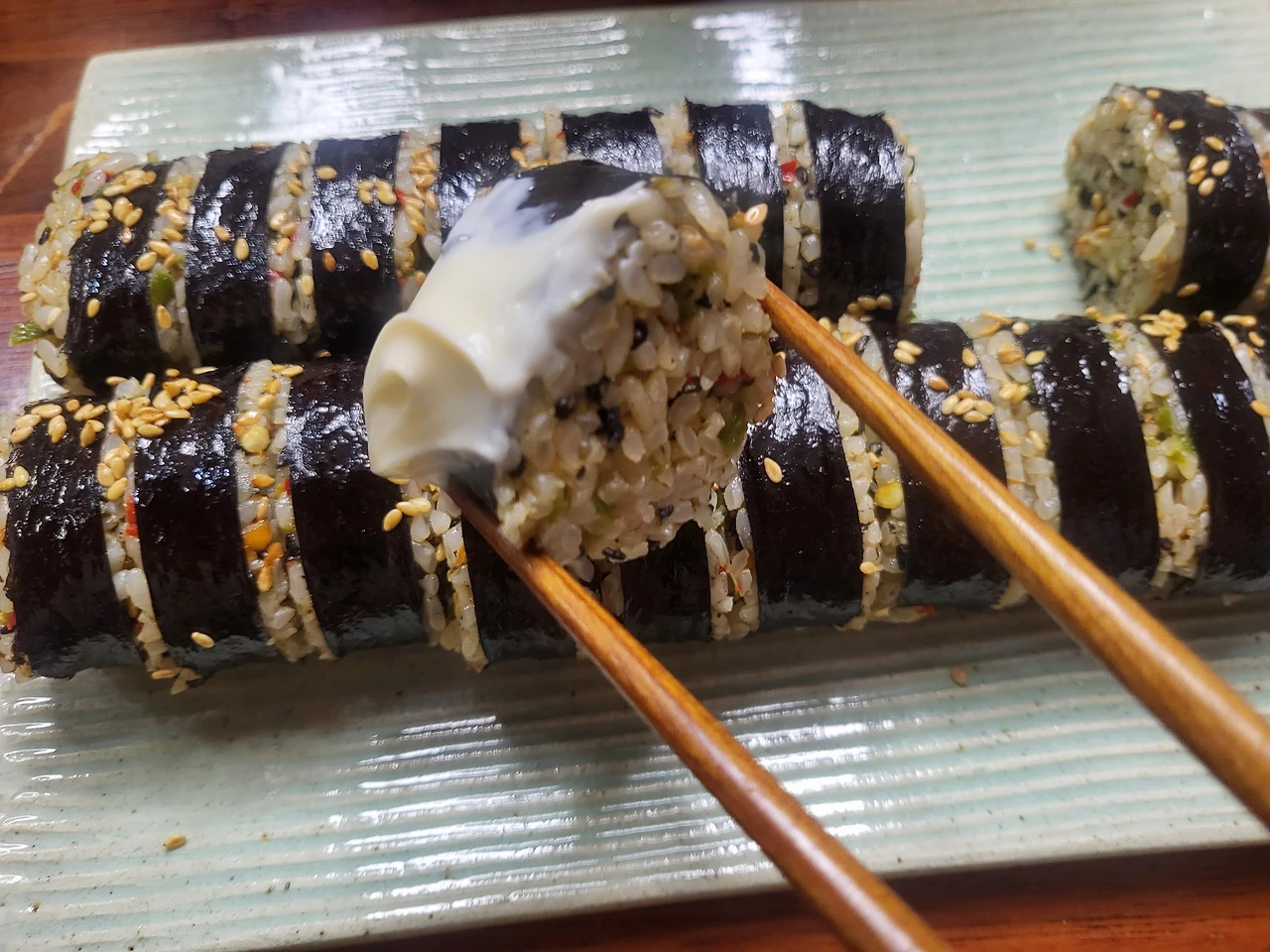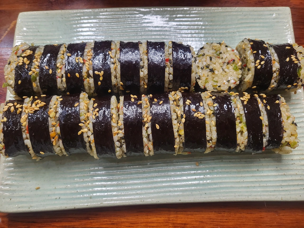 진주 땡초김밥. 다음부터는 한 줄만 사기로 다짐한다