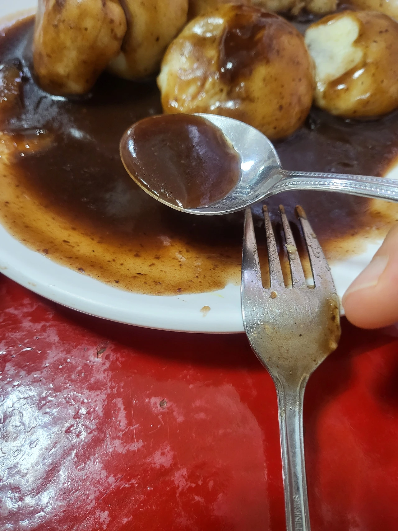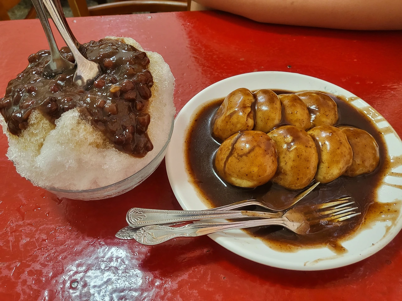 빙수와 찐빵을 시키면 이렇게 무심한듯 포크와 수저를 꼽아주신다. 빵 말고 팥쥭을 퍼먹으면 계피맛이나는 팥죽맛을 느낄 수 있다