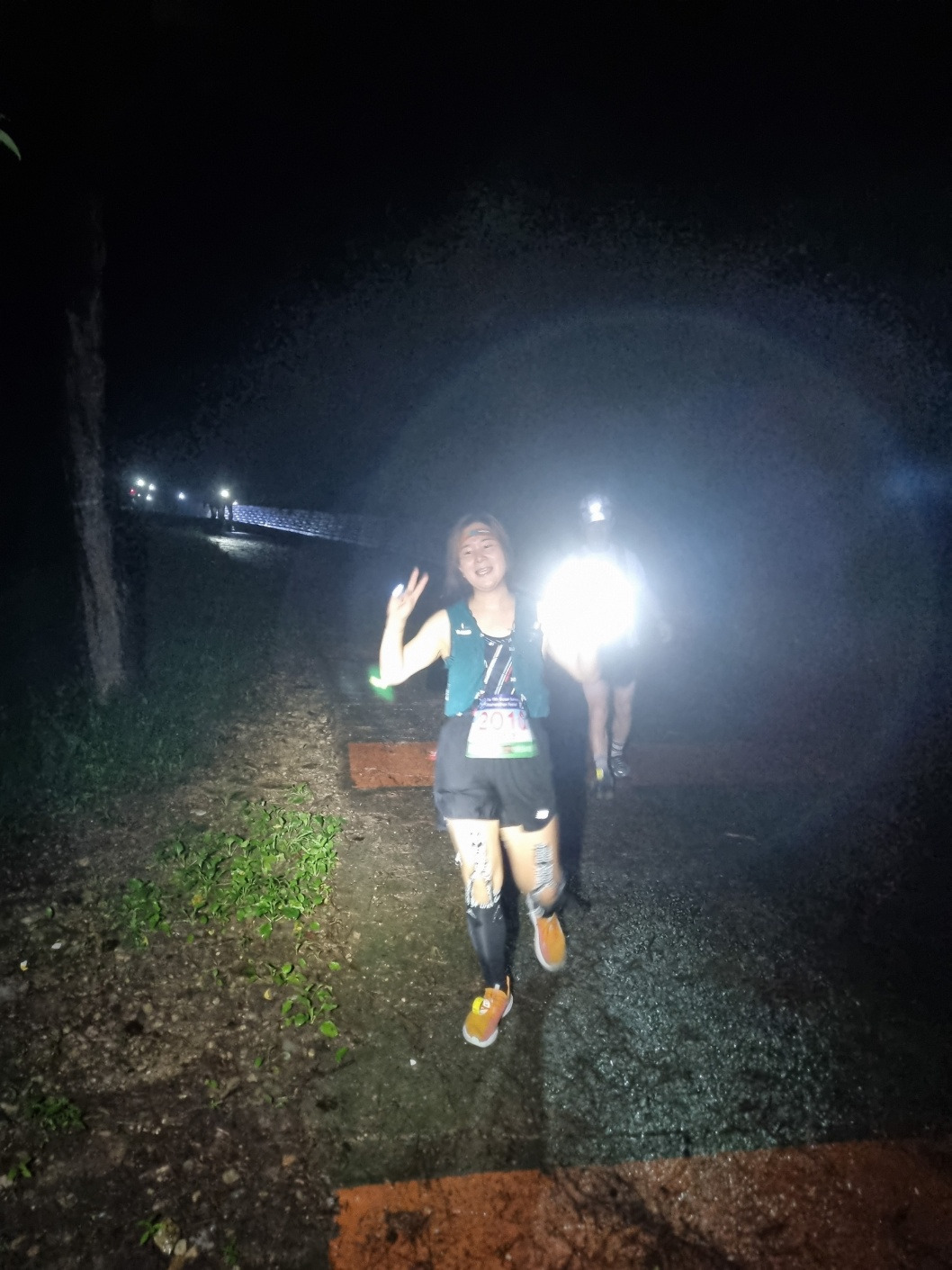 오르막도 좋지만 내리막도 좋다. 큰 힘들이지 않고 뛸 수 있다. 그냥 평평한 평지보다 오르막 내리막 경사가 있는 길이 좋다. 오르막이 힘들면 걸어도 되고, 내리막은 편하게 갈 수 있다. 누구를 이기겠다는 경쟁이 아니라 결승점 까지 가면 되는 것이다. 그래서 길에서 만난 모든 울트라 마라토너 들에게 동료애를 느꼈다. 나도 힘드니 저분도 힘드시겠다. 라는 생각을 했다. 서로에게 계속 파이팅을 외쳤다. 이기대는 경치가 그렇게 좋다는데, 밤이라 아무것도 보이지 않았다. 컴컴한 도로에 가로등 불및만 보고 바닥만 보고 서로에게 힘을 주며 뛰고 있었다.
