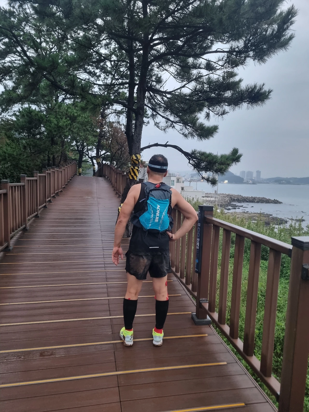 달맞이 길을 쭉 따라 올라왔다. 사실 달맞이 길은 올라가는 길은 경치를 즐길 수 없다. 그래서 그냥 오르막이네 라며 생각하고 올라갔다. 이제 힘든 오르막은 없을 것이라고 생각했는데, 달맞이길 오르막도 만만치 않았다. 우리는 거기서 여자러너분을 한분 만났다. 그분은 울트라 마라톤이 두 번째라고 말씀하셨다. 올해 청남대 울트라마라톤에 갔다 오셨다고 했다. 나보다 나이가 많아 보이는 여성분이셨는데, 혼자 울트라 마라톤대회에 참가하는 것이 대단해 보였다. 그리고 역시 경력자답게 묵묵하게 가시는 모습이 인상 깊었다.