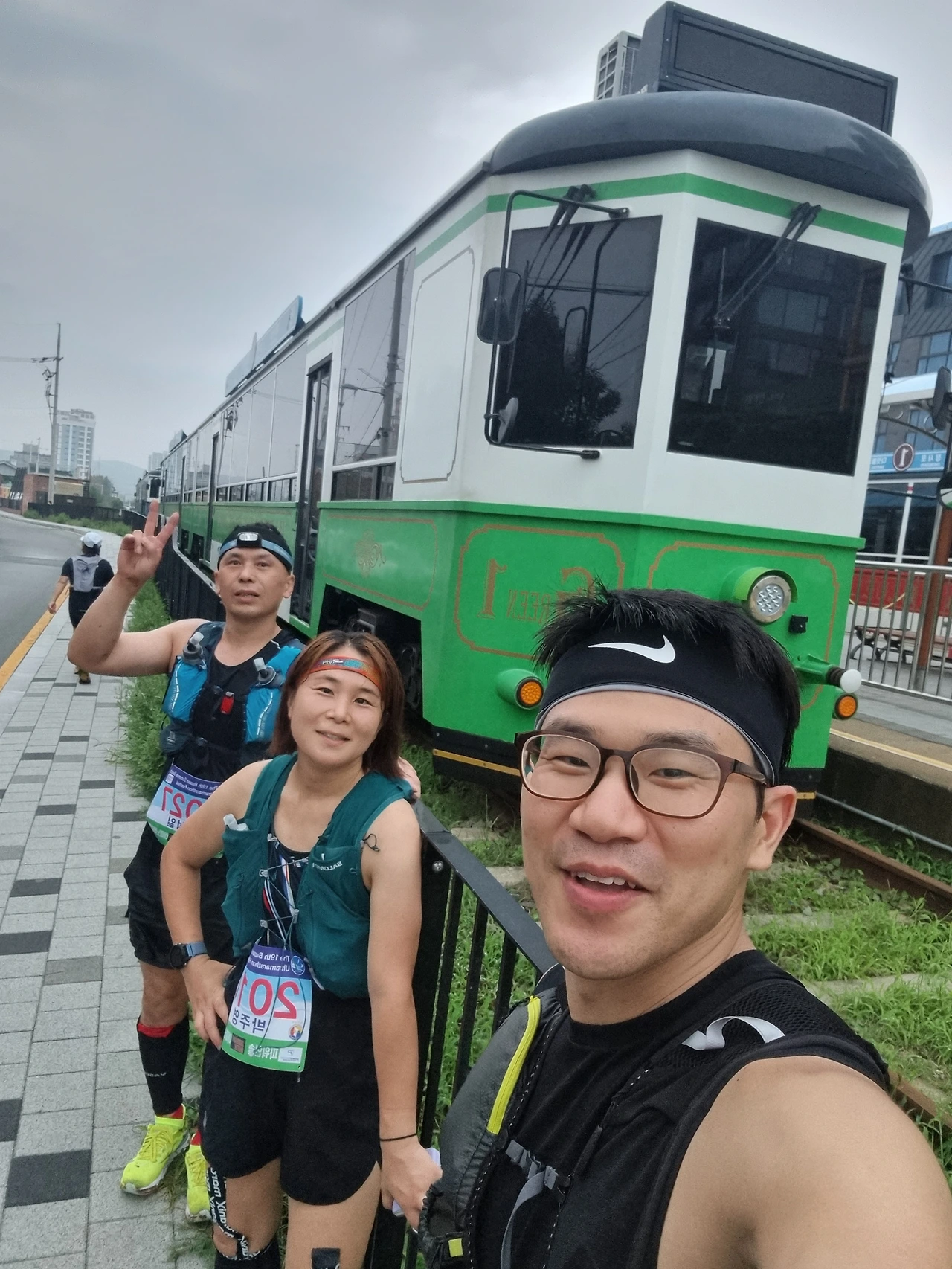 구송정역이 CP였다. CP가 보이자 얼마나 신났는지 모른다. CP만 만나면 마치 경주가 끝이난 사람처럼, 행복하고 기분이 좋았다. 날아서도 갈 수 있을 것 같았다. 거기서 수박화채를 준비해 주셨다. 이미 대변항 반환점을 찍고 오신 분들도 계셨다. 다들 지쳐 보였지만 문텐로드 진흙길을 어떻게 다시 갈지 걱정이 된다는 말을 하였다. 그분들도 많이들 넘어지셨는지 신발부터 양말, 바지까지 진흙이 많이 묻어 있었다. 그 길을 다시 갈 생각을 하니 눈앞이 컴컴해지기도 한다. 하지만 '일단 나중일은 나중에 생각하자. '라며 다시 긍정회로를 돌렸다. 지금 걱정해 봐야 스트레스만 받을 뿐이었다. 우리가 갈 때는 해가 비추어 땅이 많이 말라 있기를 바라는 수밖에 없었다. 바람이 불어서 진흙의 미끄러움이라도 없어지길 바라는 수밖에 없었다. 그래도 돌아갈 때는 적어도 해가 떠있으니 밝을 것이다. 화채를 먹고 있는데, 벌써 돌아오는 사람들이 많았다. 한 젊어 보이는 남자는 너무 힘들어 보이는 표정으로 들어왔다. CP에 오자마자 물을 마시는 것이 아니라 바셀린을 찾더니 겨드랑이가 많이 쓸렸는지 바셀린을 바르며 고통을 호소하는 소리를 질렀다. 금방이라도 울음이 터질 것 같은 모습이었다. 다들 너무 사서 고생이다. 나도 대변항 반환점을 찍고 오면 이렇게 지쳐 있을까. 한편으로는 이제 10Km 정도밖에 남지 않은 그 청년이 부럽기도 하고, 아파서 당장이라도 쓰러질 것 같은데 꾸역꾸역 뛰고 있는 것이 안타깝기도 했다.