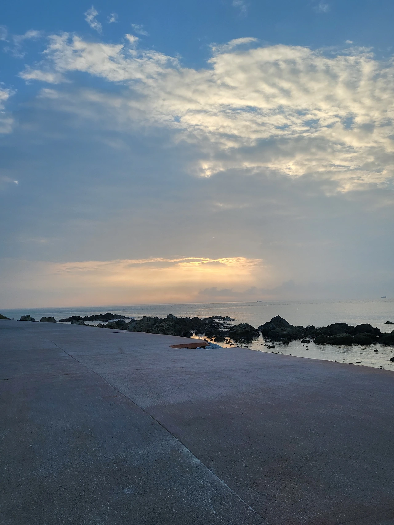 용궁사와 아난티, 오광대 공원을 잇는 길은 정말 꿈속같이 경치가 좋았다. 뛰고 싶지 않을 정도로 경치가 좋았다. 오광대 공원을 지나자 멀리 대변항이 보였다. 저기 보이는 저기쯤이 반환점이겠다며 우리는 이제 거의 다 와가니 힘내자며 다시 뛰기 시작했다. 그때부터 아마 밝은 태양을 만나게 되었다. 날씨는 점점 더워지고 있었다. 높은 습도와 높은 온도로 몸이 점점 더 지쳐가고 있었다. 멀리 보이는 건물이 오아시스인 것처럼 그때부터 서로에게 아무 말도 못 하고 달리기 시작했다. 대변항을 거의 다 왔다고 생각했을 때, 반대편에서 달려오시는 분들이 우리에게 이제 힘내라고 파이팅을 외쳐주었다. "이제 3Km만 더 가면 돼요!"라고 말해주셨다. 대변항 반환점은 신기루와 같았다. 뛰어도 뛰어도 끝이 보이지 않는 신기루 같았다. 저기까지가 반환점 CP이겠지라고 생각하면 계속해서 더 앞으로 나가야 했다. 잡히지 않는 신기루를 향해 뛰면 너무 힘들고 지친다.