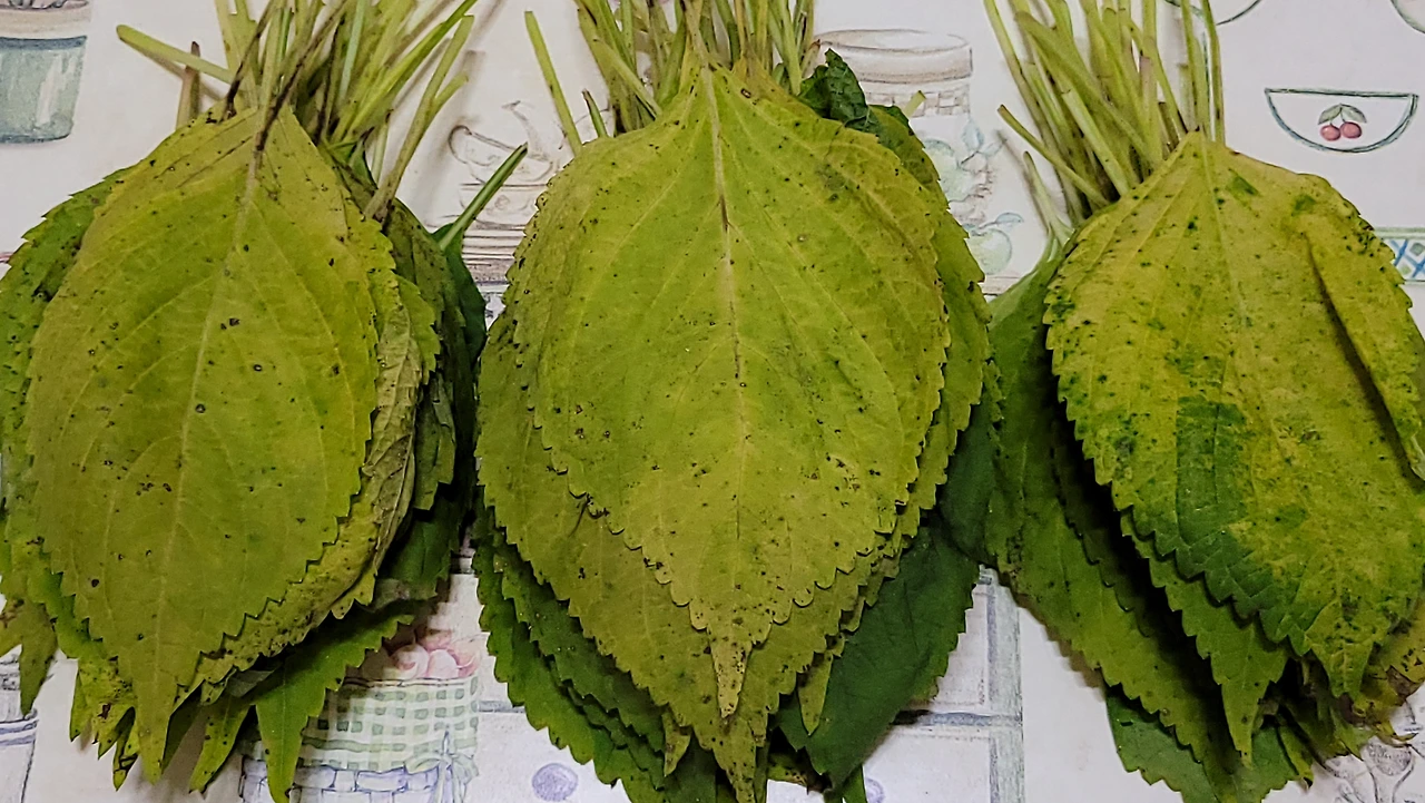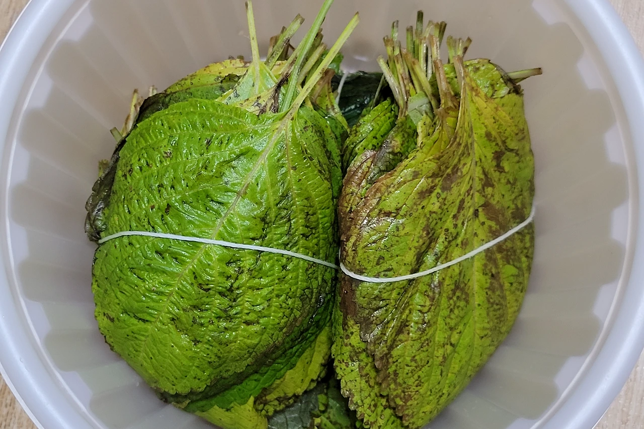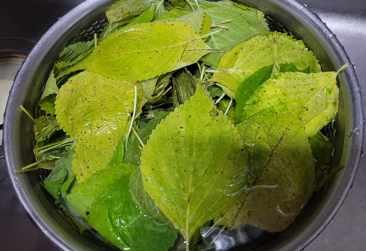 단풍이 들어가는 깻잎을 수확해서 소금물에 삭혀 두었다가