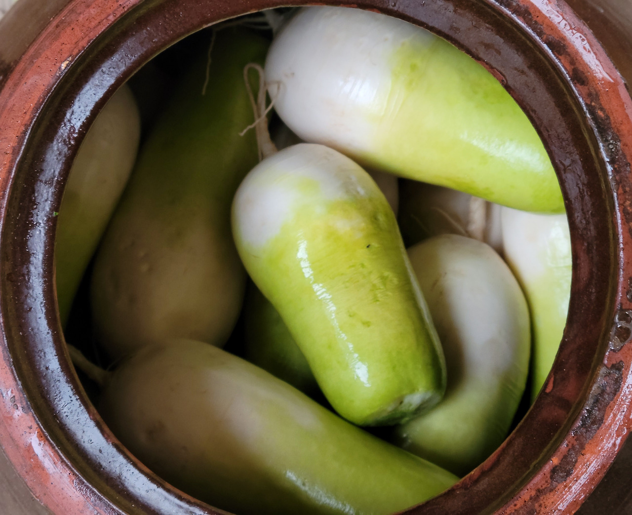장독에 남아 있는 무가 졸여진 물은