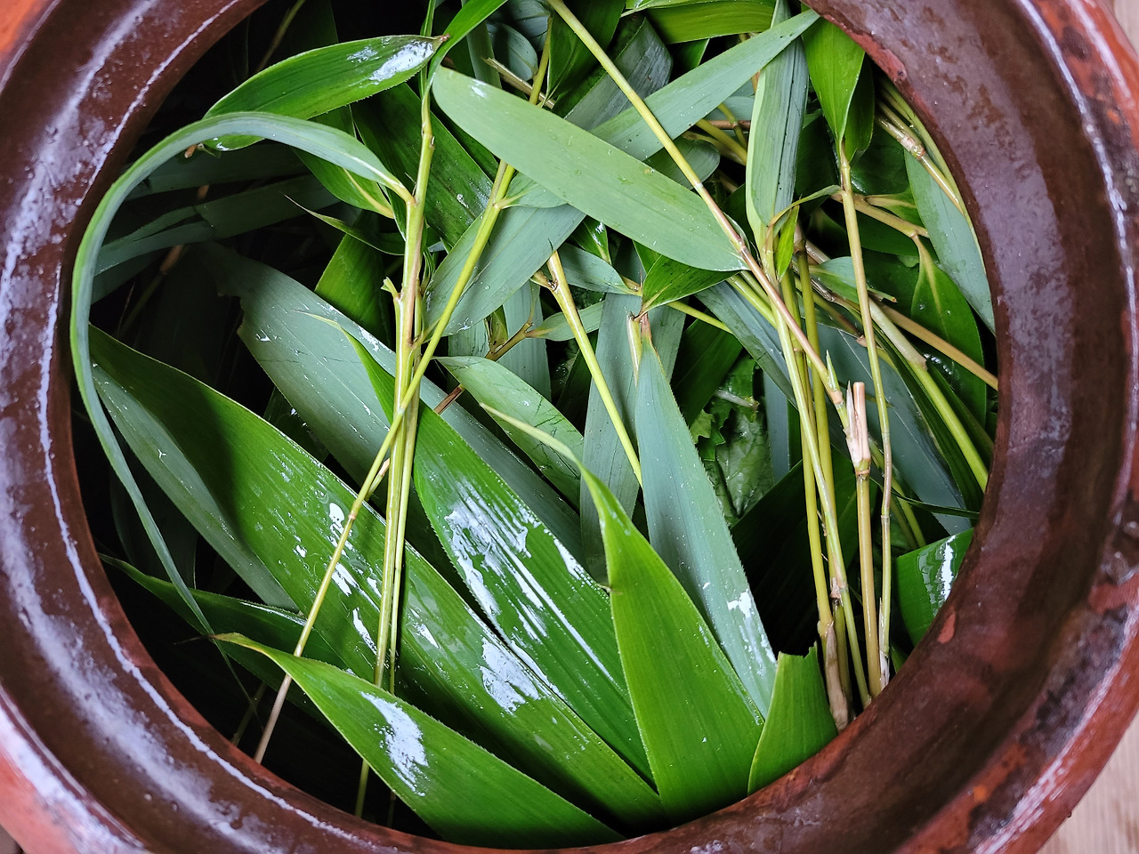깨끗이 씻은 대나무 가지를