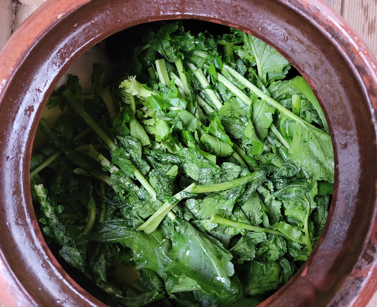 미리 준비한 장독에 차곡차곡 쌓아서 3일을 그대로 둔다.