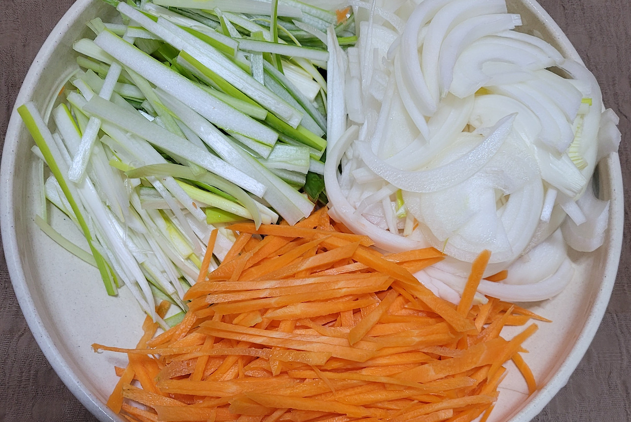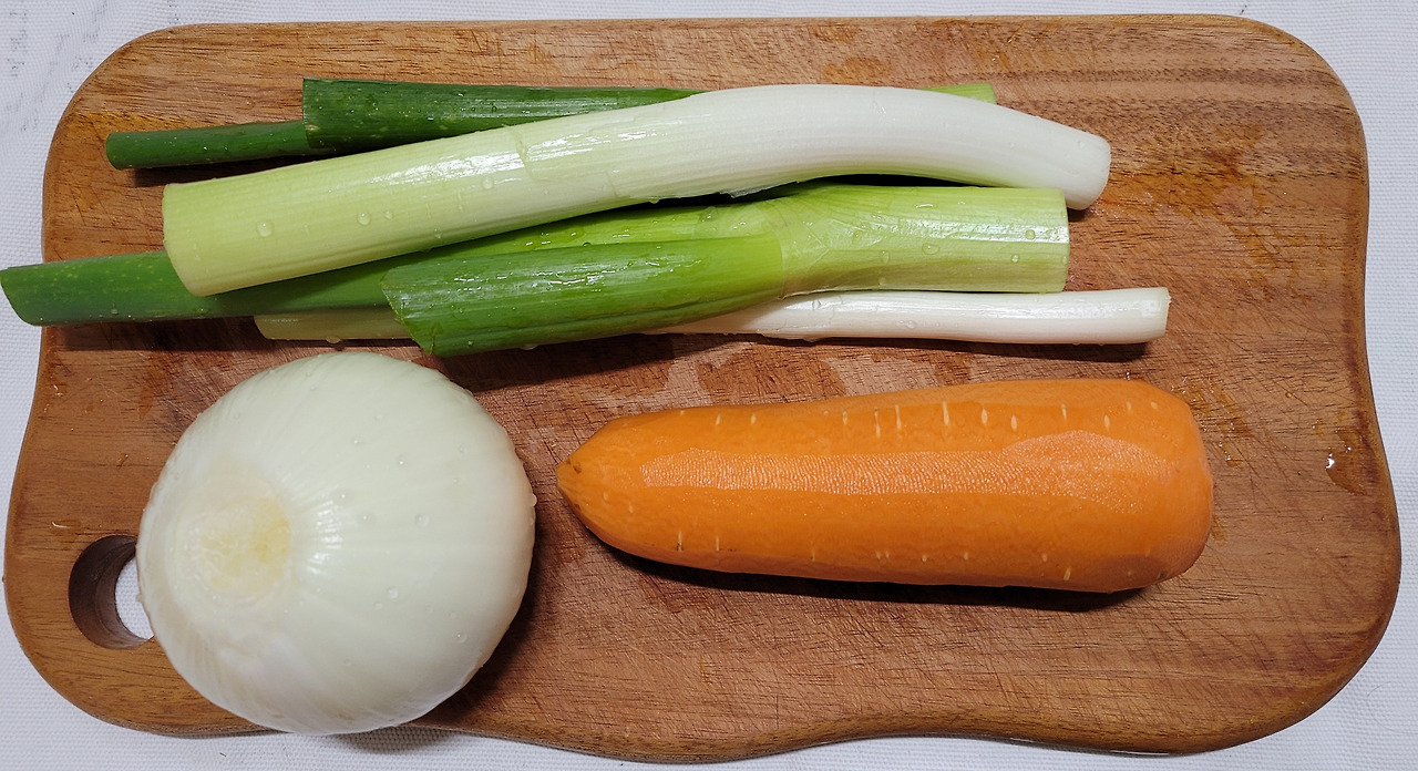 대파 2대, 당근 중간 크기 1개, 양파 1개를 준비한다.