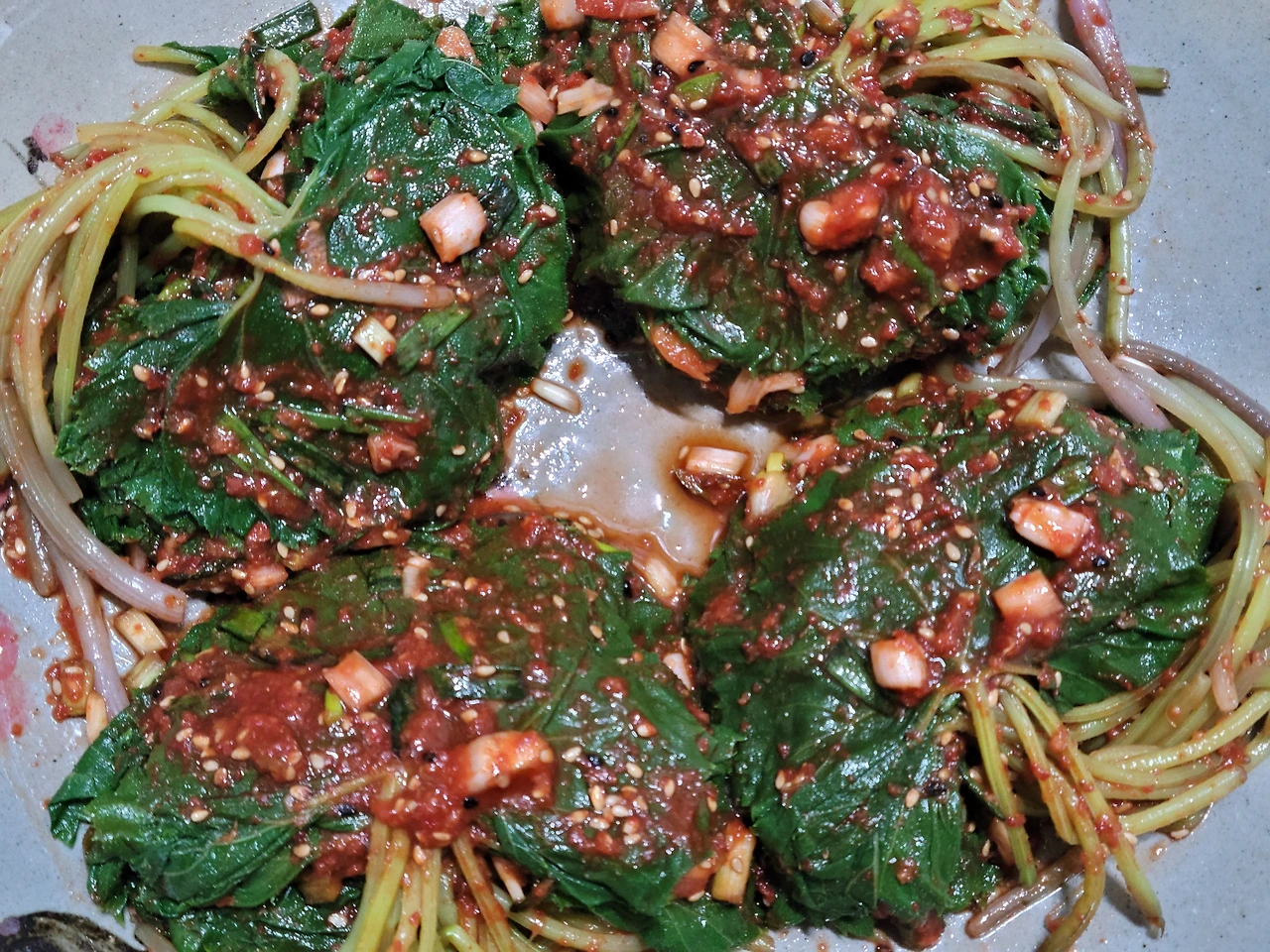 양념에 멸치젓갈, 산초가루, 쪽파, 청양고추를