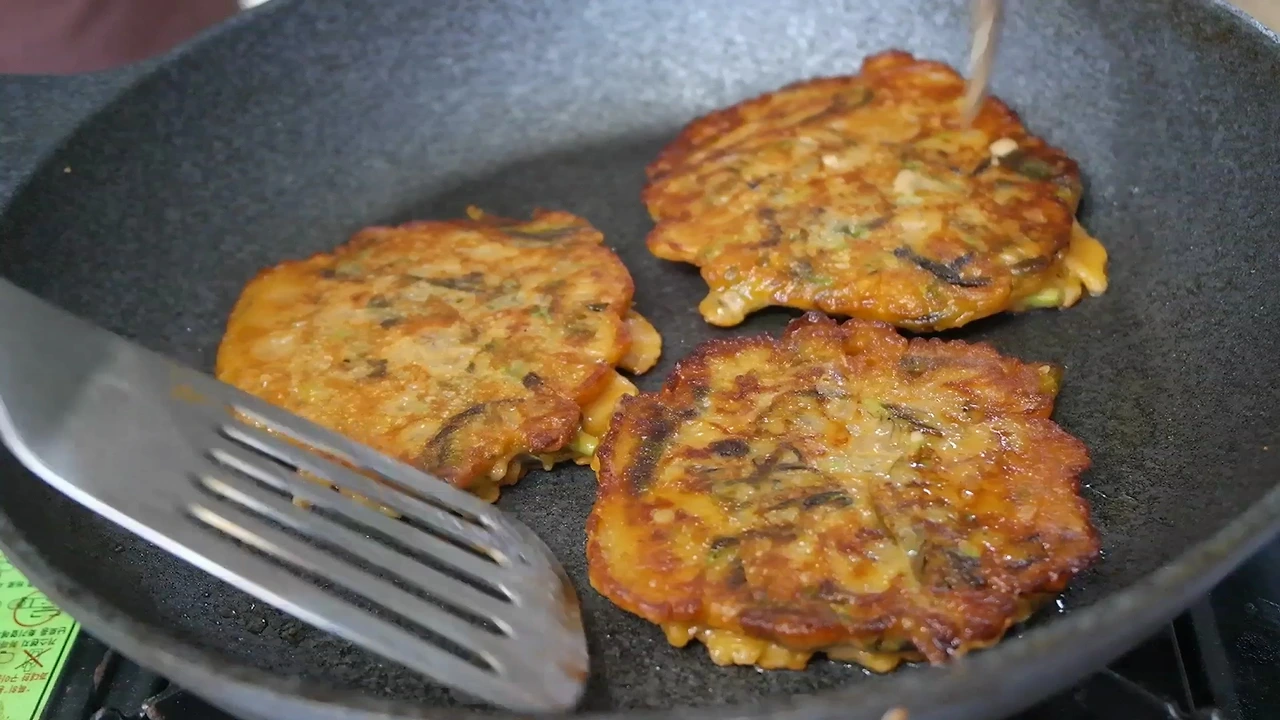 한 국자씩 떠서 앞뒤로 노릇하게 구워낸다.
