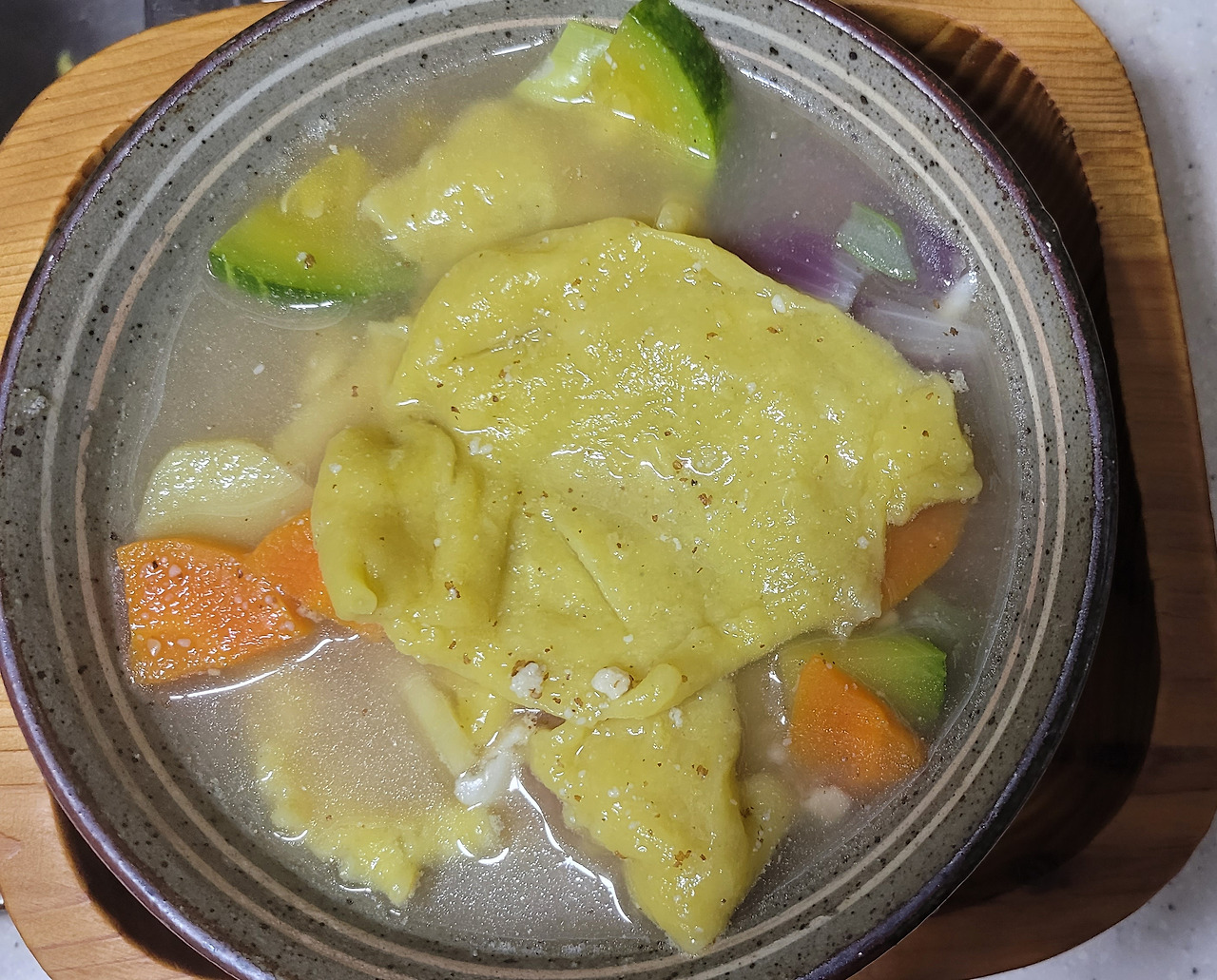 엄마의 수제비는 얇고 정말 부드러워서 그냥 입에서 목구멍으로 바로 넘어갔다.