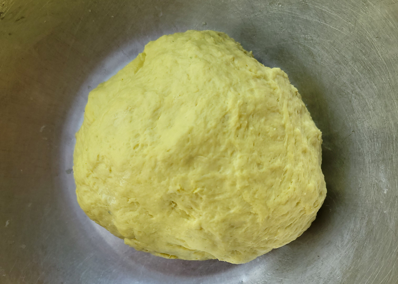 2. 단호박을 갈아 넣은 수제비 반죽은 색감에서부터 기분이 좋아진다.