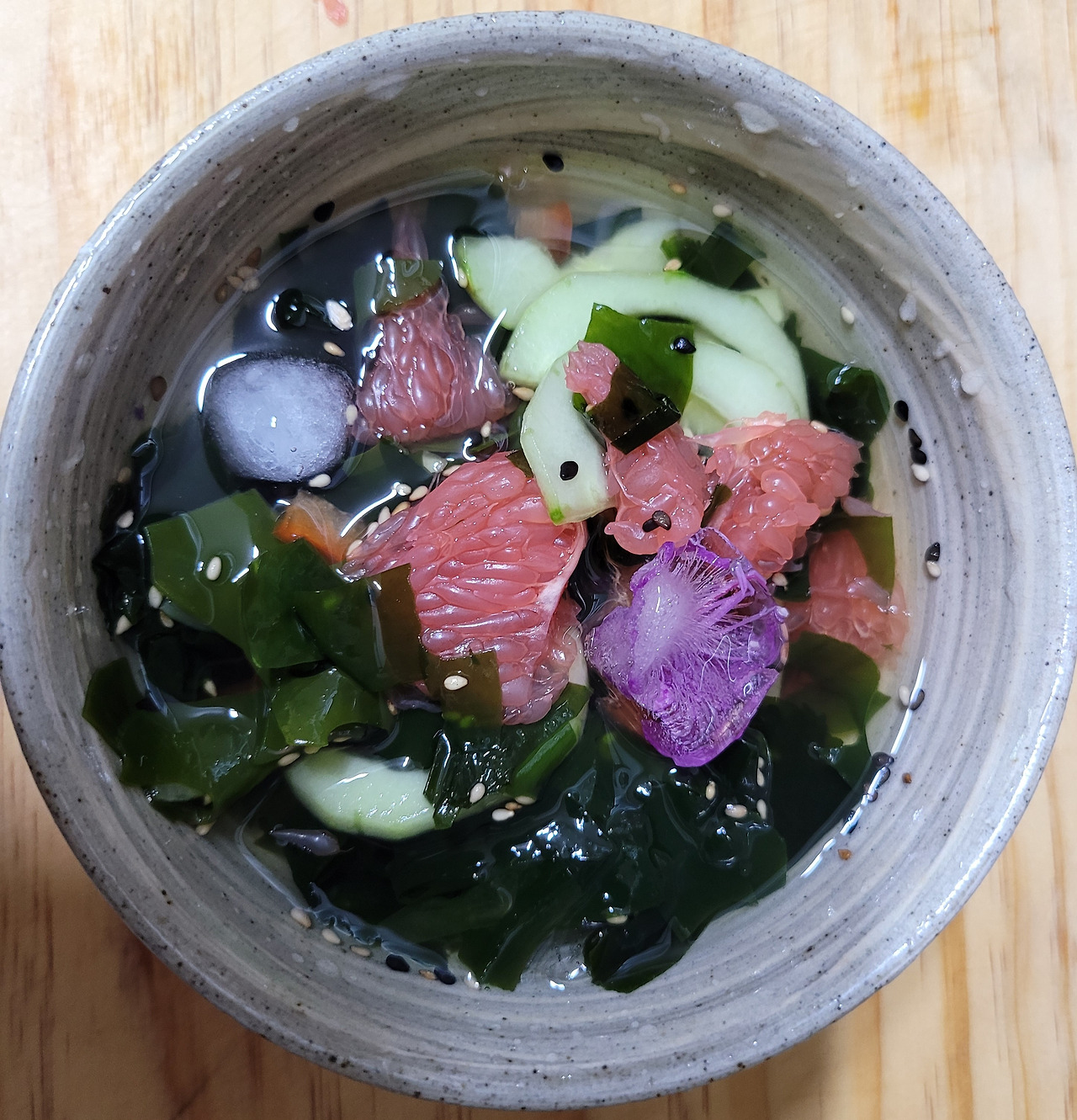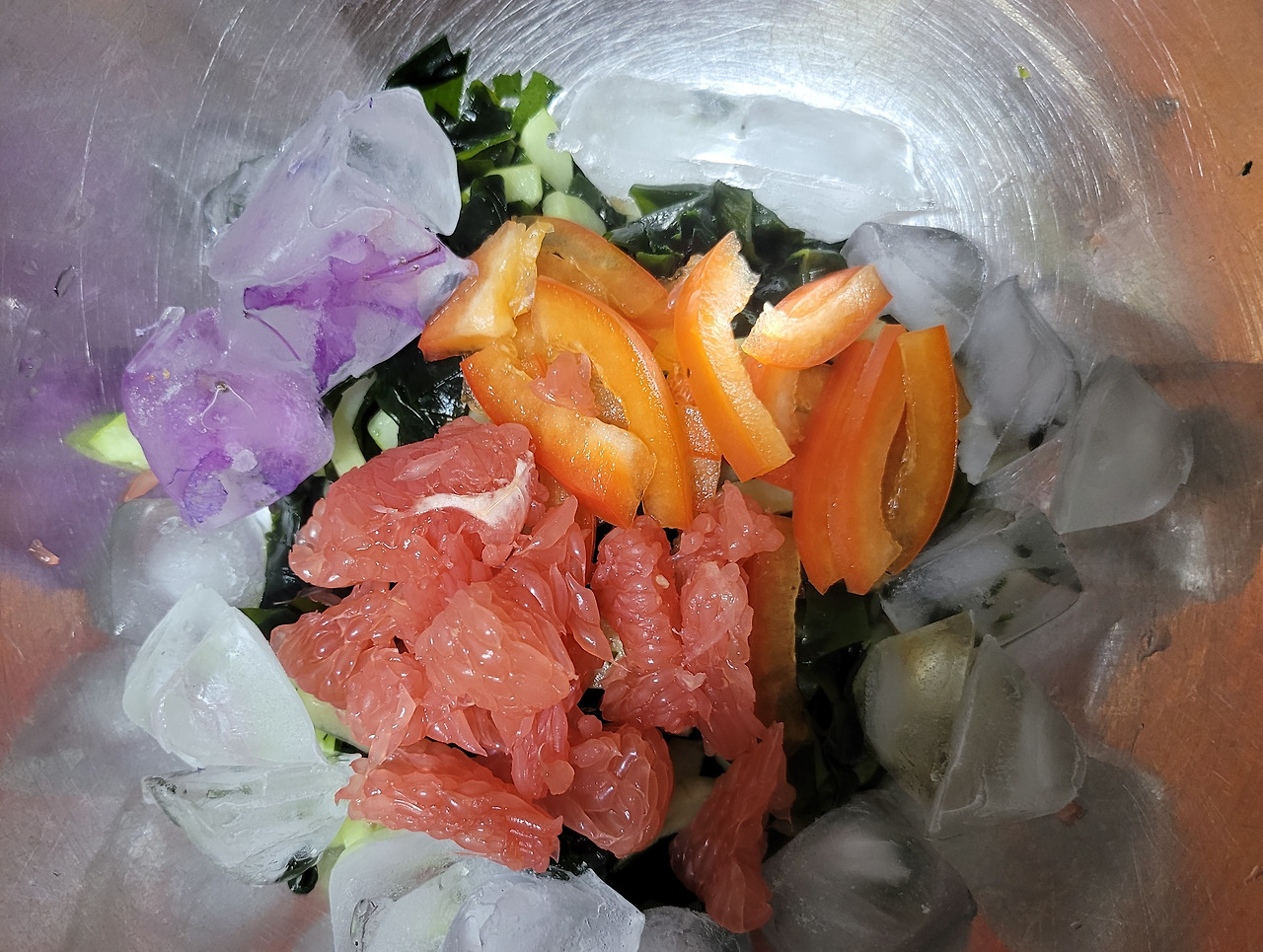 1. 녹색 계열의 오이와 미역에 핑크색 자몽이 들어가면 보기도 좋지만 먹을 때 오이의 아삭함과 입안에서 씹을 때 톡톡 터지는 자몽, 쫄깃한 미역의 식감에 기분이 좋아진다.