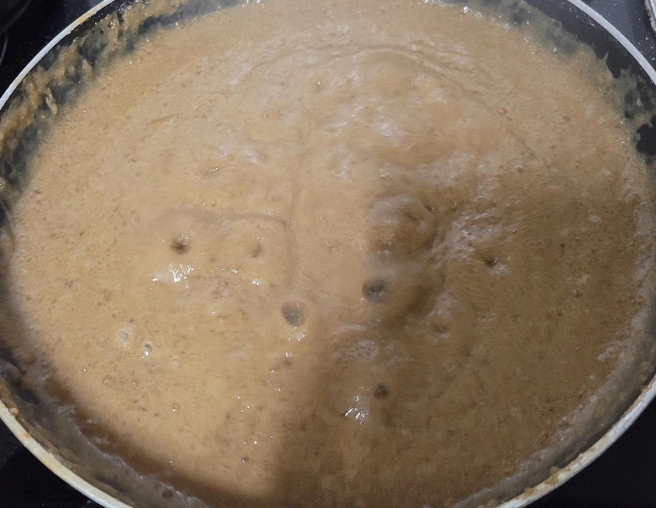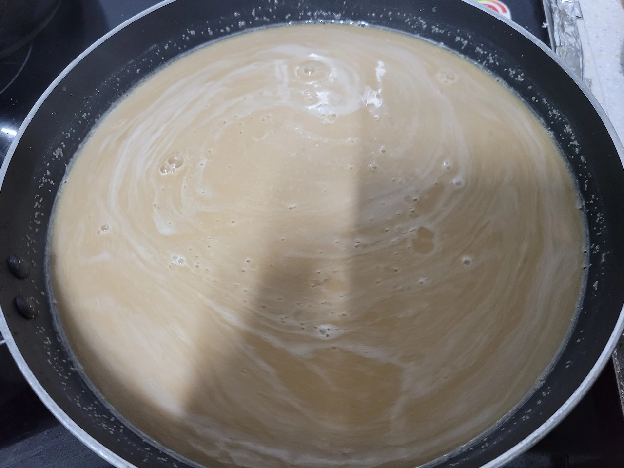 3. 큰 거품이 북적거리며 생길 때 식용유 한 스푼을 넣어 고루 섞어준다.