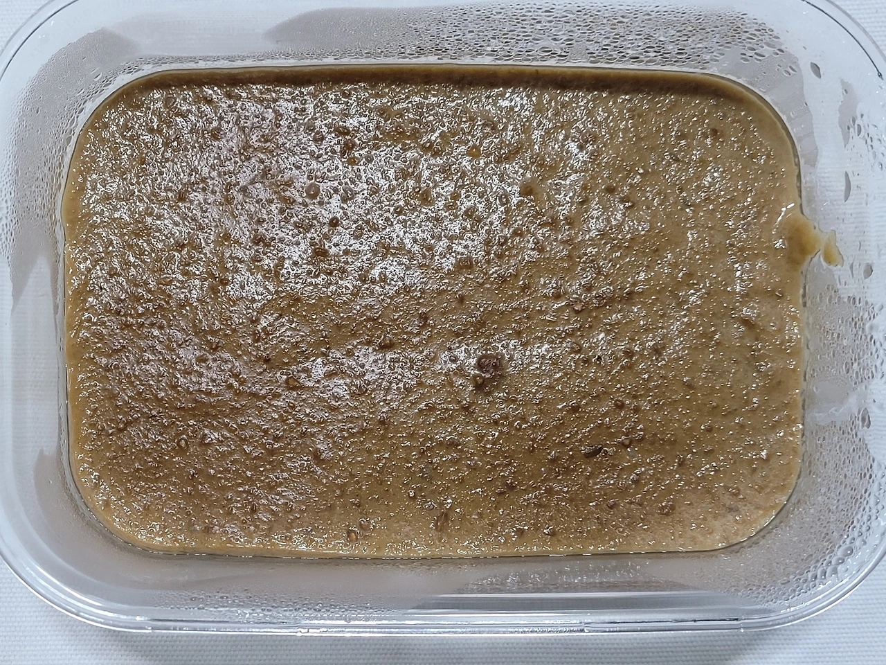 4. 끓인 묵을 뜨거울 때 용기에 붓고 서늘한 곳이나 냉장고에 넣어둔다.