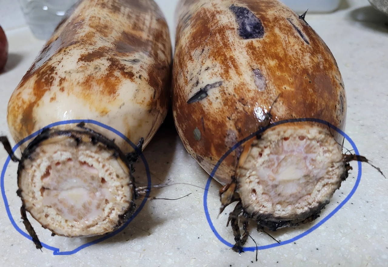 무겁고 통통하고 절단 부위에 구멍이 없어야 한다.