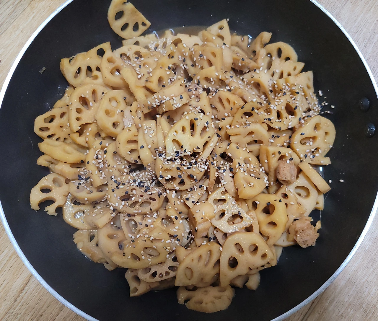 아삭하면서도 쫀득한 연근조림 완성이다.