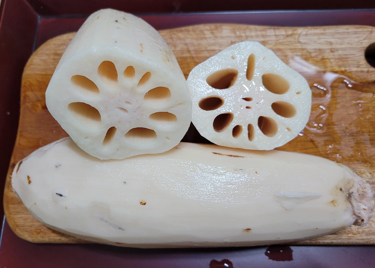 까만 연근을 베어 물면 가느다란 하얀 줄이 나오는 게 신기했고