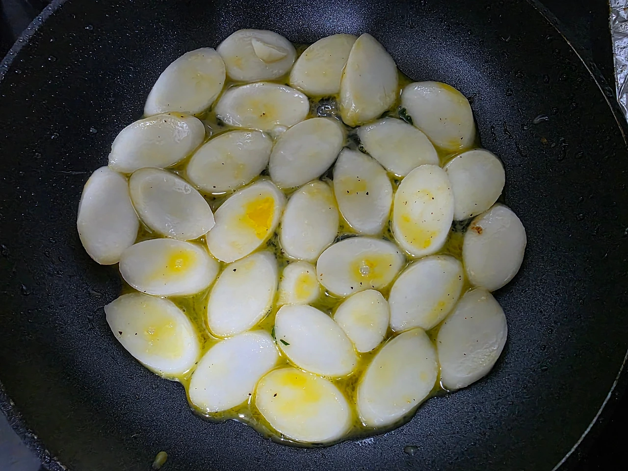 프라이팬의 뚜껑을 덮고 약한 불(인덕션으로 3)에서 서서히 익힌다.