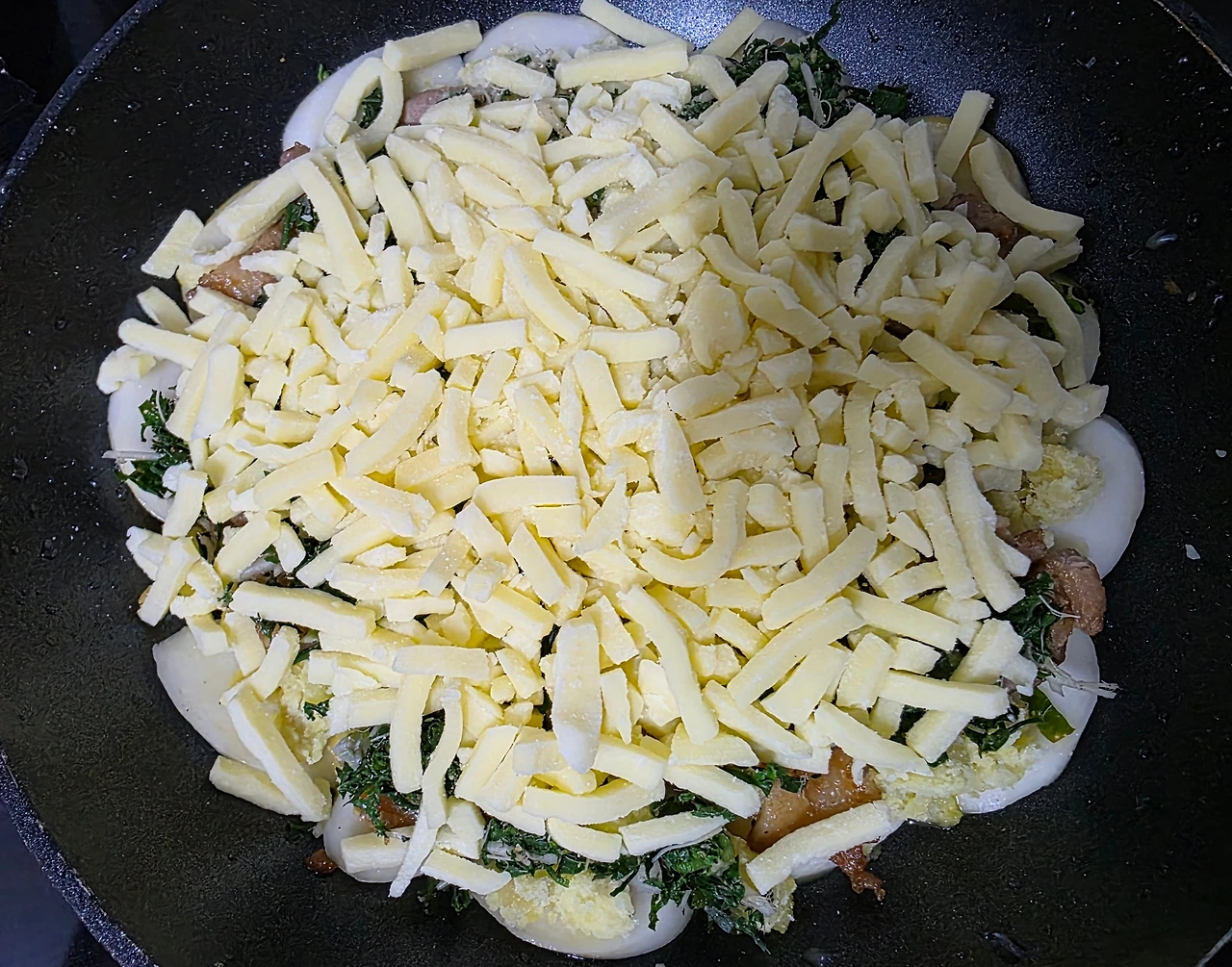 마지막으로 피자치즈로 완전히 덮어 준다.