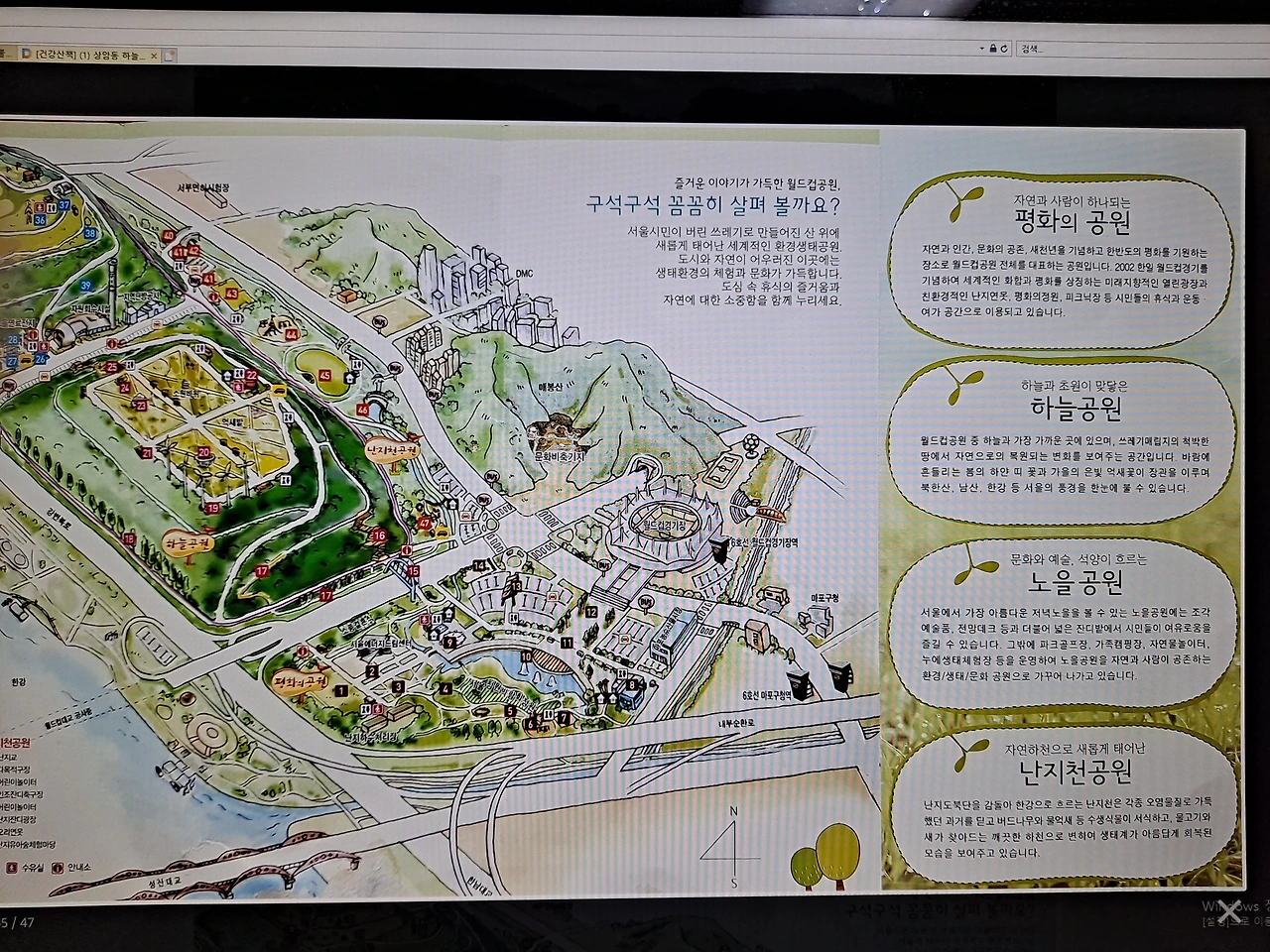 가을이 발그레 익어간다. 어제 밤에는 소낙비가 쏟아졌다. 여름내 잠을 설치게 한 매미들도 사라졌다. 몇 년 전 가을 산행을 했던 생각이 났다. 집에서 가까운 월드컵공원으로 가는 6호선을 탔다. 전철 안 승객들의 옷차림이 계절의 변화를 느끼게 해 주었다. 하늘 공원 쪽으로 걸어가고 있는데 어린 시절 자주 들었던 까치 울음소리가 깍, 깍 들린다.