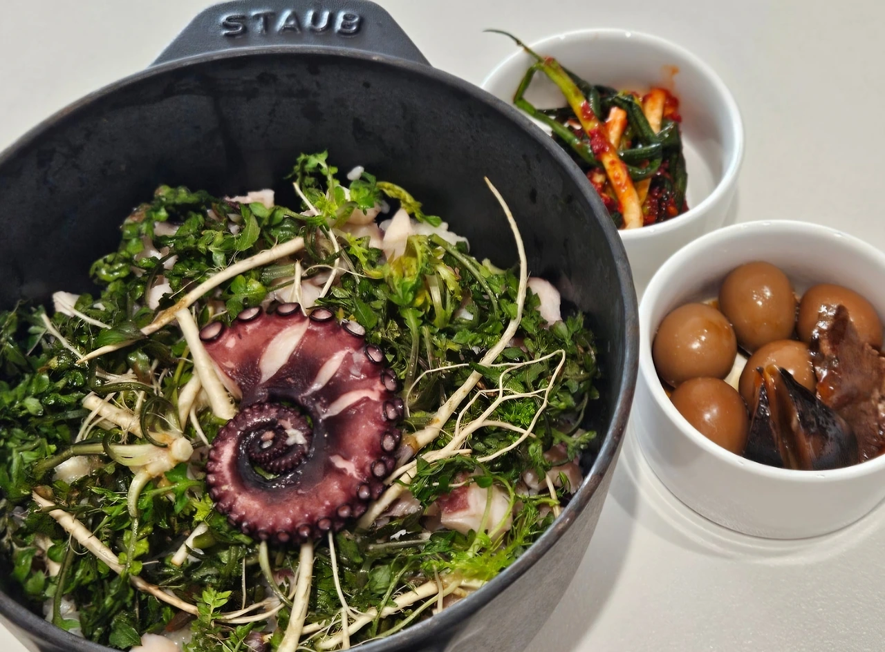 냉이향 가득하게 문어와 냉이 넣고 솥밥도 하고 겨울을 이기고 자란 쪽파로 파김치도 담고.
