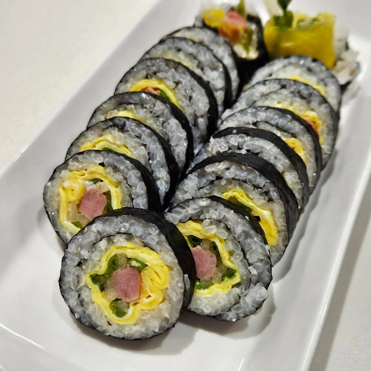 향긋한 미나리 넣고 돌돌 말아 미나리 김밥도 쌌다.