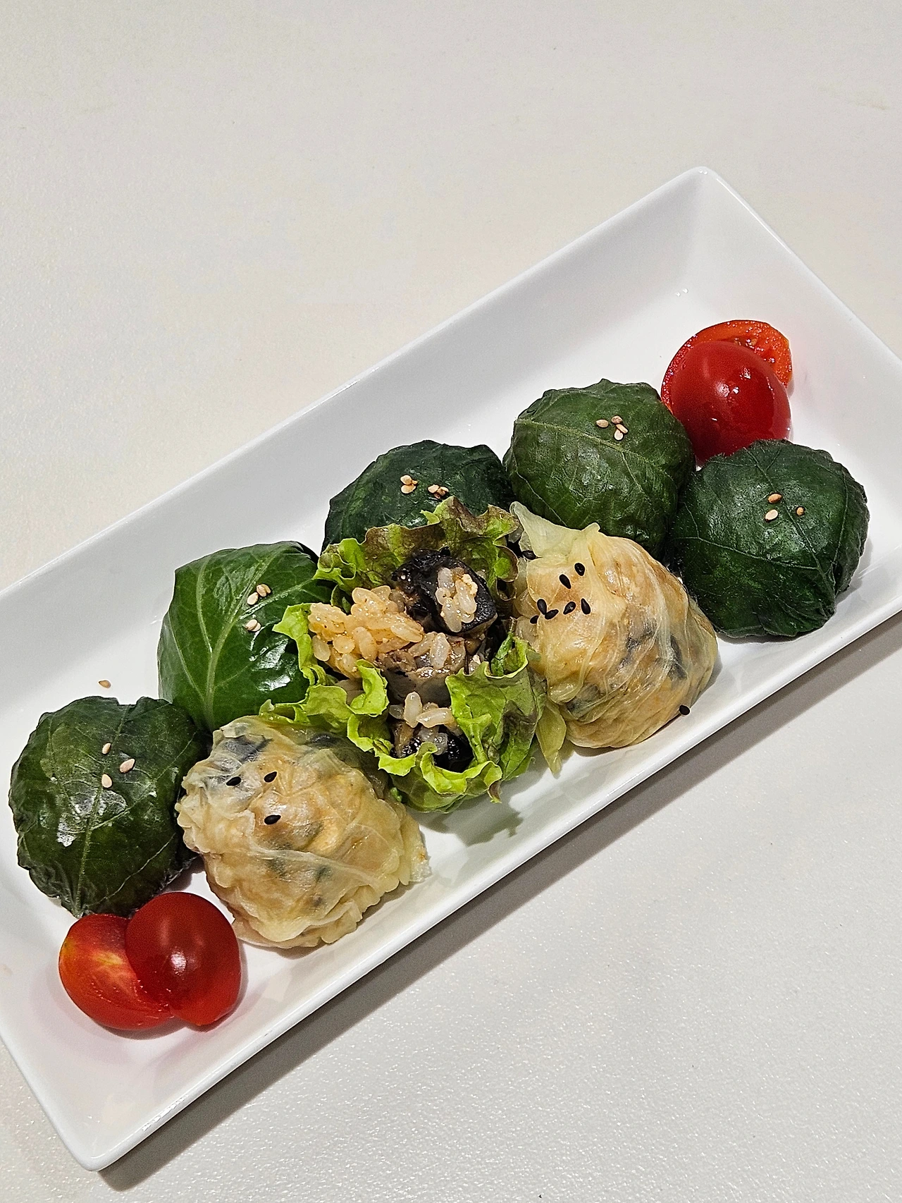 밭에서 갓 따온 맛에는 비할 바 아니더라도 호박잎도 사고 케일, 깻잎, 양배추도 함께 쪄주었다. 상추쌈은 먹어보았지만 다른 숙쌈들은 처음인 아이를 위해 거부감 없이 먹어보라도 동글동글 모양도 내어 싸보았다. 향긋한 깻잎 한 쌈, 부들 까끌한 호박잎 한 쌈, 고소한 케일 한 쌈, 달달한 양배추 한 쌈, 아쉬우니 상추도 한 쌈. 아이는 거부감 없이 한 입에 맛보고는 엄지를 척 날려 주었다.