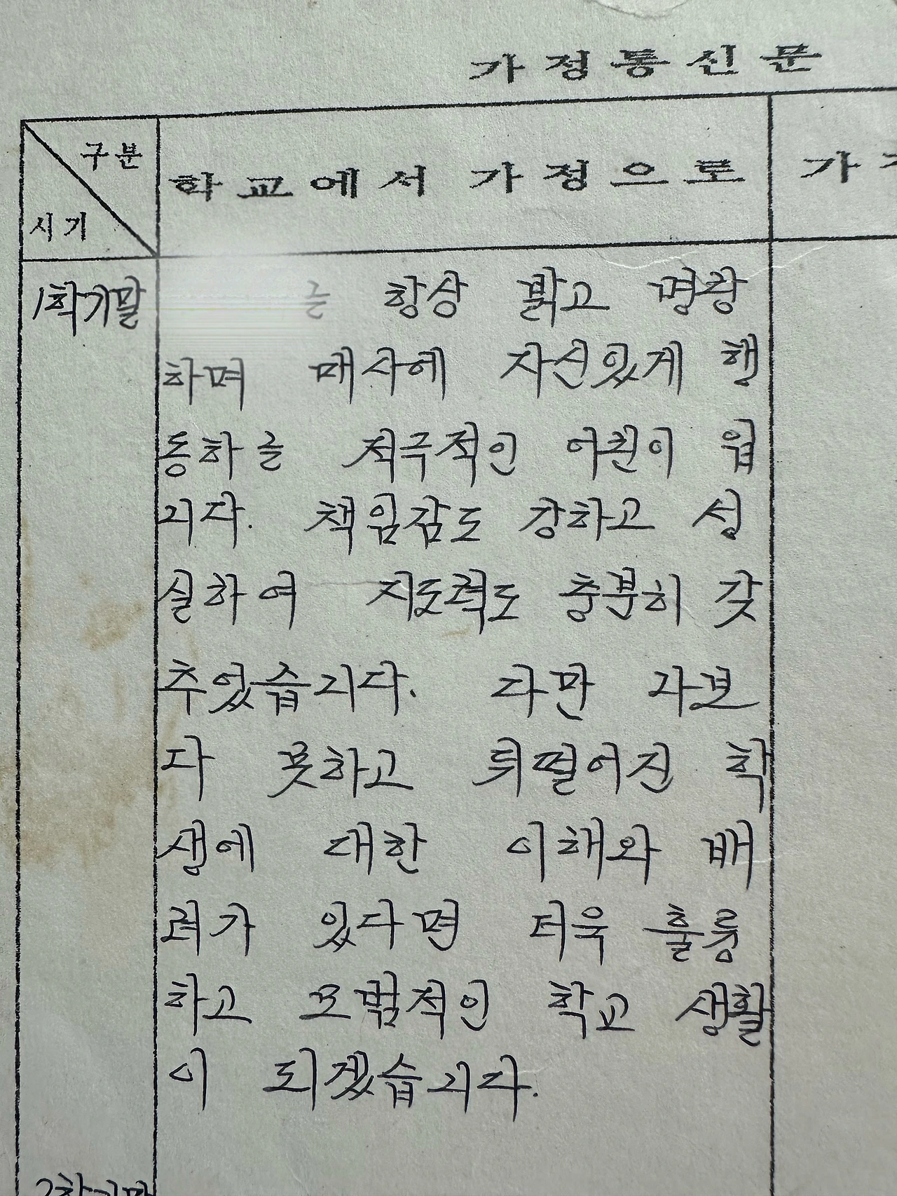 내 눈엔 친구들이 너무 어려 보였고 무시하기 일쑤였다. 그 점을 소미우 선생님은 매우 염려하셨던 것 같다. 그 시절 생활통지표에 이런 이야기가 쓰여 있다.
