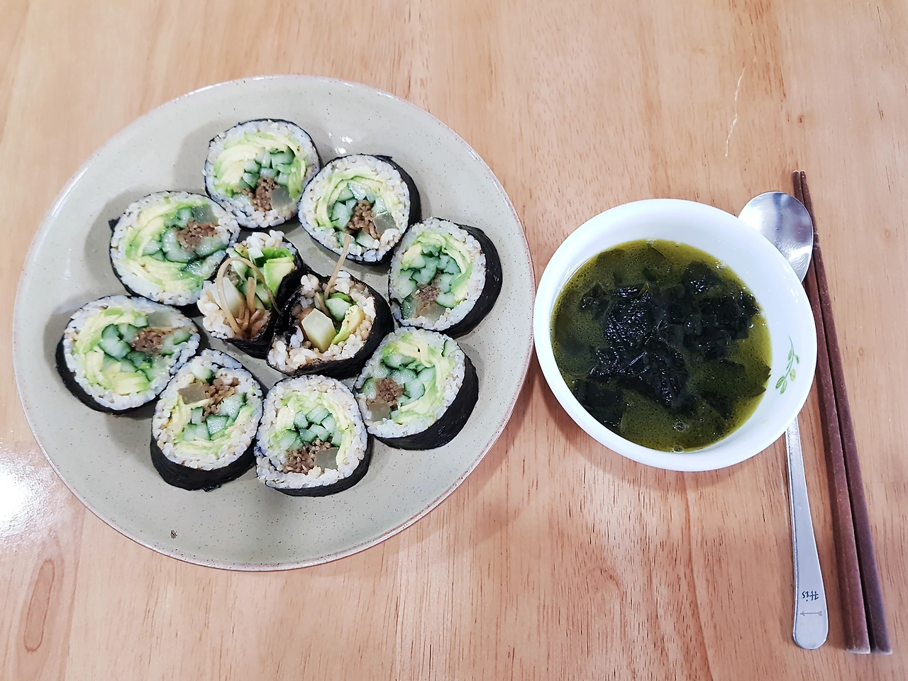 나의 김밥으로 말할 것 같으면, 밥 양은 최대한 적게, 그러니까 김에 밥알이 촘촘하게 붙어 있는 정도로만 밥을 깔고 그 위에 아보카도, 단무지, 오이, 우엉 이렇게 네 가지 재료만으로 마는 야채김밥에 가깝다. 우리 집은 김밥 재료가 항시 준비되어 있어서 식사 메뉴가 애매할 때는 김밥으로 해결하는 편이다.