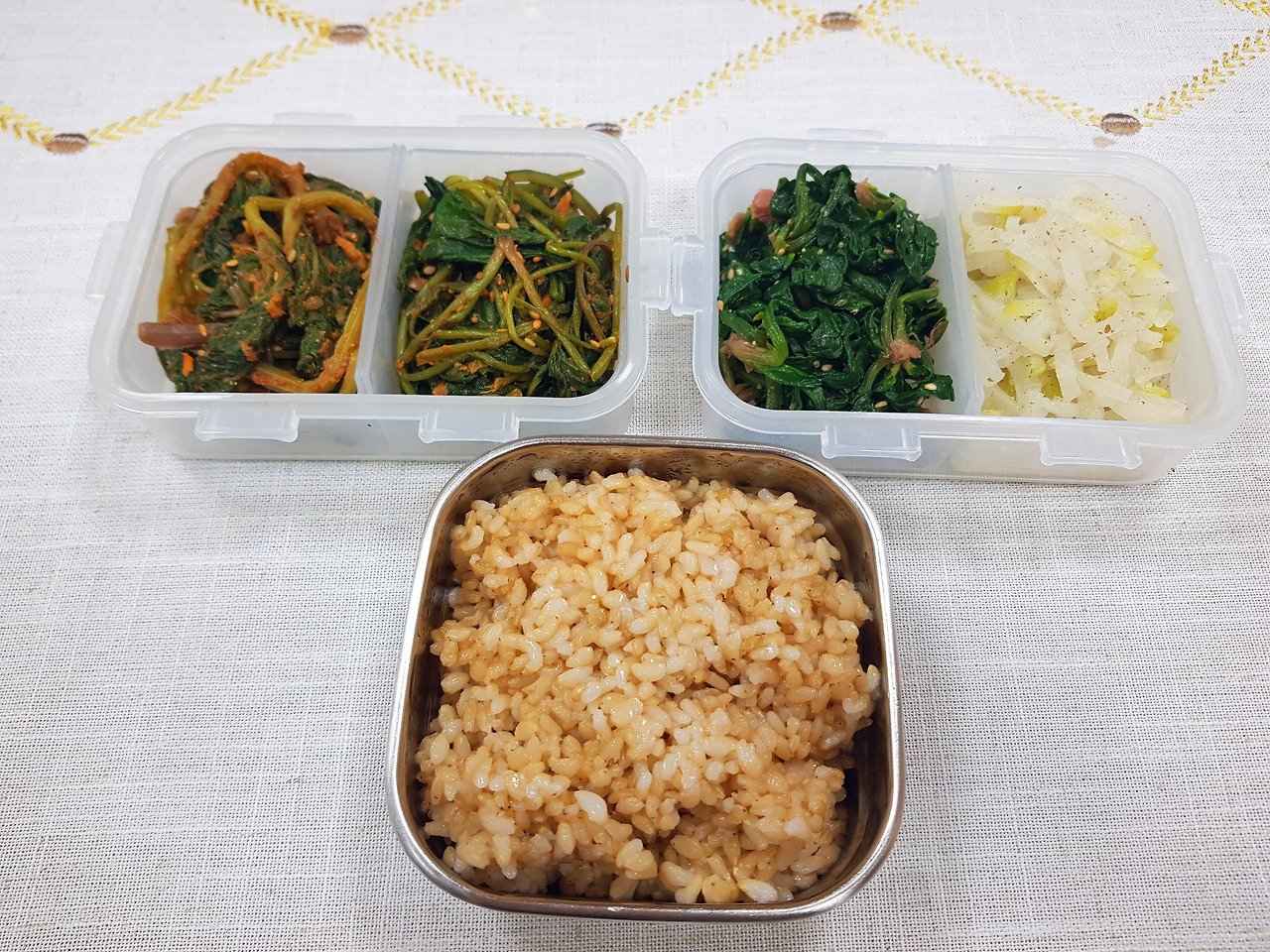 작년 7월, 건강검진을 마치고 결과표를 받았는데 총 콜레스테롤 270에 가까운 수치로 고지혈증 소견을 받았다. 평소 육고기를 거의 먹지 않는 편이고, 채소 과일 위주의 식사를 즐기던 터라 검진 소견을 받아들이기에 다소 어려웠다. 나이가 한 살 늘어나면서 검진 소견도 그 내용이 늘어나는 건 당연한 거라고 사람들은 우스갯소리로 말하지만 나는 받아들이고 싶지 않았다. 뭐가 문제였을까. 혹시 빵, 면 종류의 밀가루 음식을 즐겨 먹어서 그런 걸까. 이런저런 고민 끝에 식사 구성을 바꿔보기로 했고, 회사 구내식당을 이용하는 대신 도시락을 싸서 가지고 다니기로 마음먹었다. 식사 구성이라고 해서 대단한 식이요법을 한 건 아니고 늘 먹던 채소 위주의 식사를 더욱 확고하게 지켰고, 나 혼자 먹는 도시락이었지만 정성스럽게 준비했다. 채소 김밥, 양배추 절임, 두부 구이, 곤약 조림, 현미밥 등을 도시락으로 준비해 가면 누군가가 만들어 놓은 음식을 선택의 여지없이 먹지 않아도 되고, 반대로 누구의 의견을 들을 필요 없이 내가 먹고 싶은 밥과 반찬을 준비해서 휴게실에서 영화도 보고 책도 읽으면서 식사시간을 가지게 되니 처음엔 준비하느라 아침시간이 분주했지만 지금은 바쁜 업무시간 속에서 나 혼자서 오롯이 가질 수 있는 이 시간을 잘 채우고 싶어서 준비도 즐겁다. 게다가 영화 보며 책보며 천천히 밥 먹는 시간은 더욱 즐겁다.